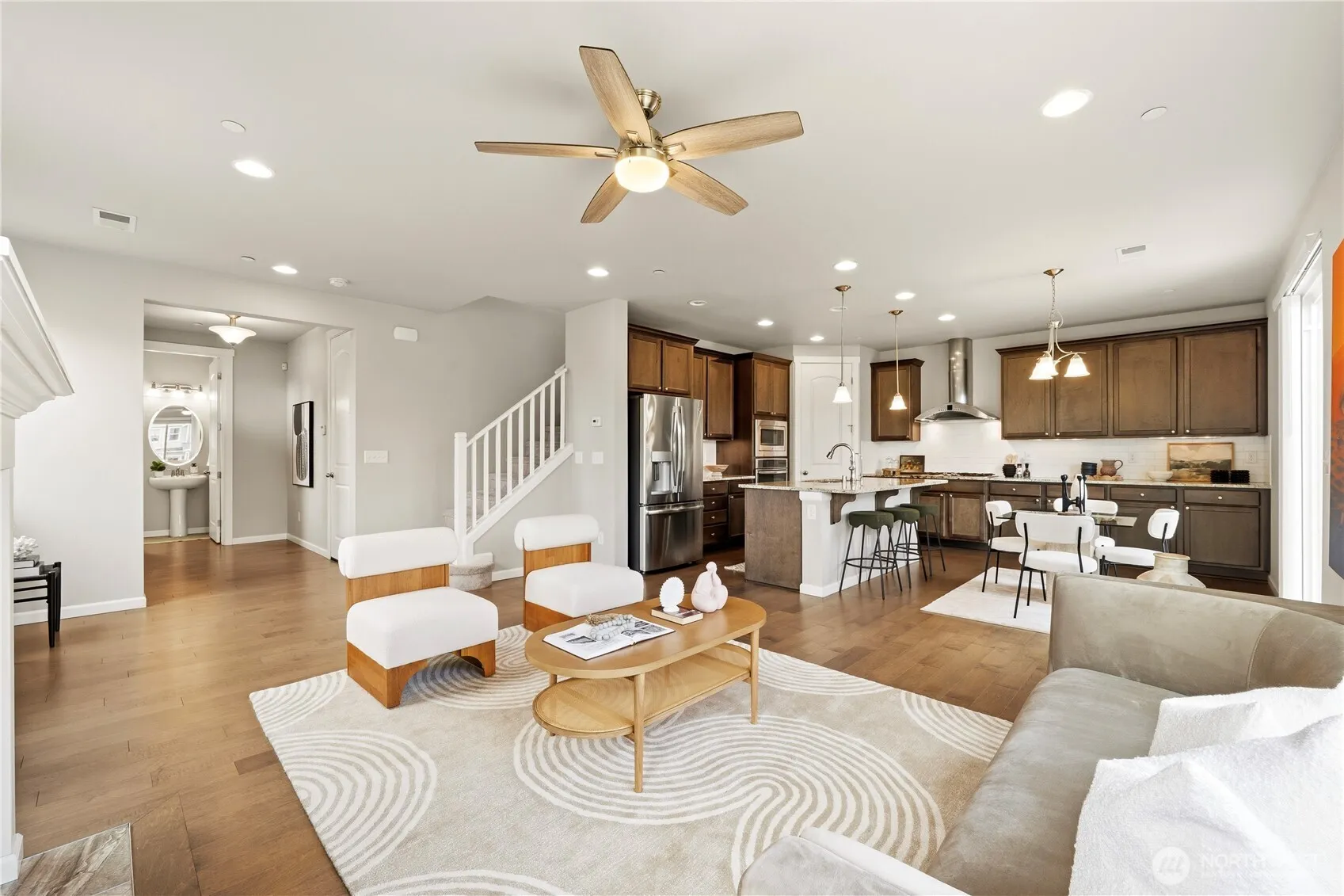 Impeccably maintained corner-lot home offering style, comfort, and convenience. The main level features a well-designed kitchen with stainless steel appliances, granite countertops, gas cooktop, center island, and a space-saving pantry which opens to a dining area and living room with high ceilings and fireplace—ideal for everyday living and entertaining. The upper level offers a peaceful primary suite with a vaulted ceiling and en-suite, along with three additional bedrooms sharing a hall bathroom, and a dedicated laundry room. Additional highlights include central air conditioning, security system, sprinkler system, and two-car garage. Enjoy outdoor living with a fully enclosed backyard and direct access to the community playground. Minutes to Chambers Bay for golf, hiking, and scenic views, plus shopping and dining on Bridgeport Way W. The combination of space, layout, and location make it an appealing choice for those seeking a comfortable and adaptable living environment.