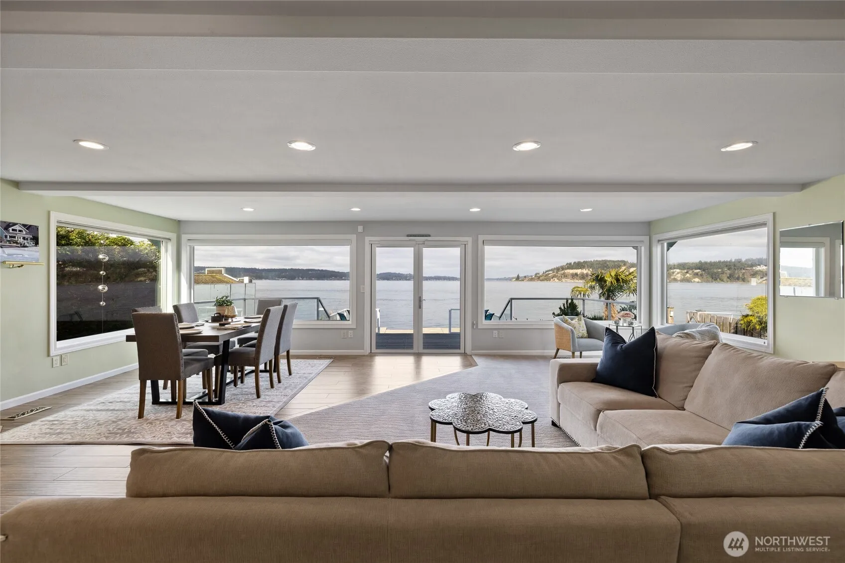 Custom remodeled, three-bedroom waterfront home on coveted Day Island! The main floor features a chef’s kitchen equipped with a Wolf range and Sub-Zero fridge, a walk-in pantry, and expansive views of the Sound and Olympics. The kitchen flows into a dining area and a spacious living room that opens onto a multi-level composite deck. The main level also includes a Junior Suite with vaulted ceilings and a full bathroom, a cozy sitting room, and a powder room. Upstairs, the spacious primary suite provides spectacular views, two walk-in closets, a bar/coffee area and a lovely remodeled bathroom. A third bedroom with marina views completes the upper floor. The outdoor living space is nicely landscaped and features an expansive patio leading to 60 feet of low-bank saltwater beach with private tideland rights. The detached two-car garage boasts 2 EV Chargers, and the house is environmentally friendly with a 1500 gallon rain barrel gutter collection system & solar panels on the garage. There are 2 hot water tanks that service the home for maximum comfort. This property offers a peaceful escape with the convenience of city amenities & an award-winning school district. Located directly across the street from the Day Island Yacht Harbor and near the Narrows Marina, perfect for boat owners!