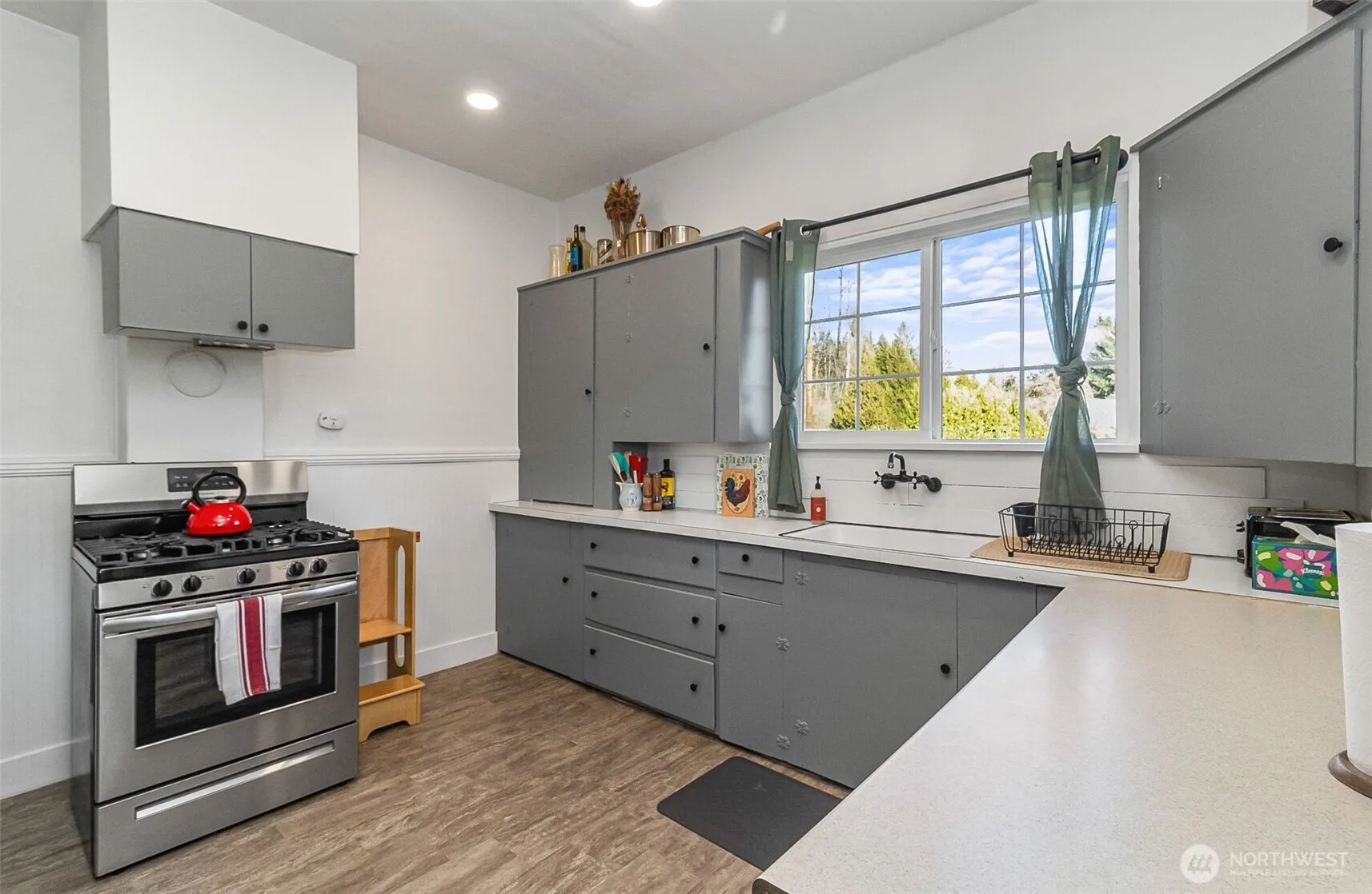 This charming Craftsman home in Granite Falls is ready for its new owners! Offering 2,016 square feet, 3 bedrooms, 1 bathroom, and a 2-car garage, this property blends classic character with thoughtful updates throughout. The upstairs has been fully remodeled to create a spacious primary bedroom along with a ¾ bathroom including heated tile floors that add comfort and luxury. The stylish barn doors create character and privacy along with additional storage. Recent upgrades provide peace of mind and energy efficiency, including a new roof (2022), fresh interior-exterior paint (2023), retrofoam insulation in the walls/floors, updated flooring/mini-splits on both levels. new light fixtures, electrical panel/wiring, security gate, gravel driveway, insulated/electric garage doors & trex decking. Don’t miss this opportunity to own a beautifully updated Craftsman with modern touches in a welcoming community setting.