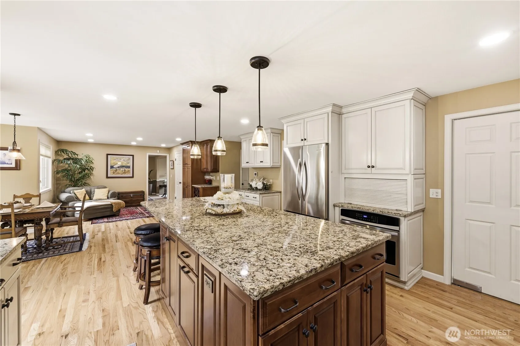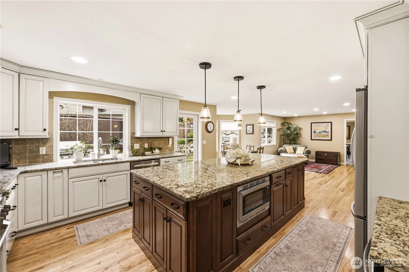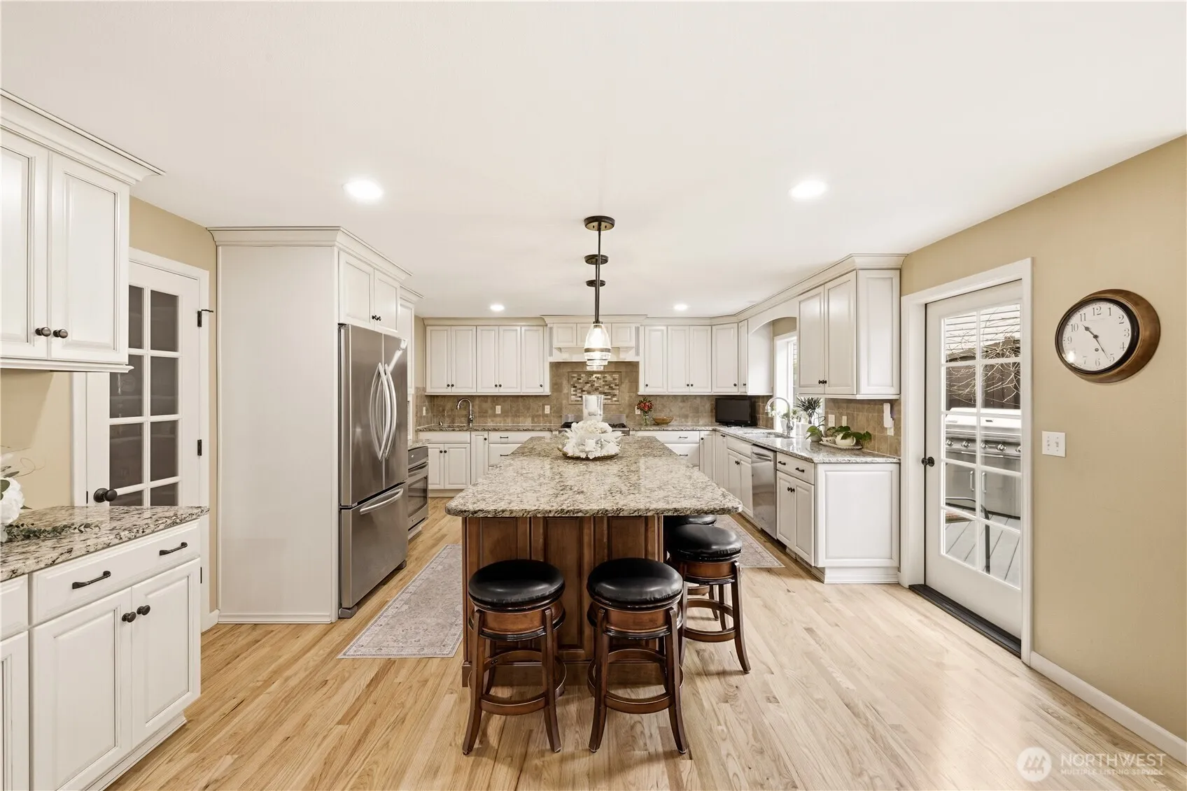 Experience elevated living in this beautifully appointed Auburn West Hill residence. Easy access to Hwy 167, I-5, and the new light rail station. With both elegance and functionality in mind, the home showcases an expanded, chef-inspired kitchen featuring a premium gas range, dual walk-in pantries, and an impressive island that anchors the space—perfect for both intimate gatherings and grand entertaining. The true heart of the home. Rich hardwood flooring flows throughout the main living areas, including the kitchen, family room, entry, and bonus room, creating a timeless and cohesive aesthetic. Outdoors, a private oasis awaits—complete with a fenced-in sport court, expansive entertaining deck, and a tranquil, secluded patio surrounded by lush landscaping and walls of sculpted block. Modern comforts abound with central air conditioning and a backup generator, ensuring peace of mind year-round. The luxurious primary suite is highlighted by a beautifully remodeled spa bath, dual closets, and an indulgent walk-in shower with dual fixtures. Offering exceptional versatility, the home also features a separate, main-level living area including a kitchenette, living area, bedroom, and bath—ideal for multi-generational living or refined guest accommodations. The timeless exterior is freshly painted with stately brick accents, outdoor lighting and manicured grounds. Enjoy use of a spacious three-car garage with room for storage and all the toys.