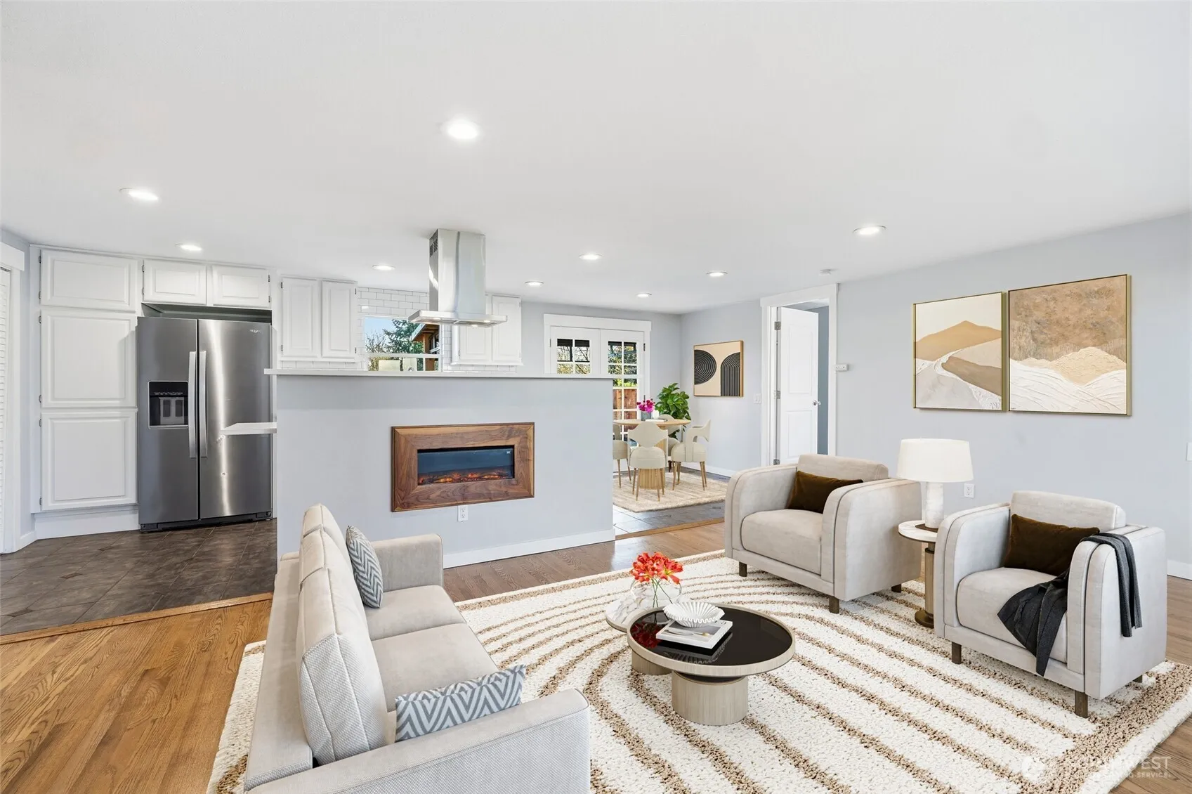 Beautifully Updated 3-Bedroom Rambler on a Large Corner LotThis 1,270 sq ft, 3-bedroom rambler sits on a private, mature corner lot with gated RV access. The home features an open-concept design with a freshly painted interior, including trim, and newly refinished hardwood floors throughout. The living space is anchored by a cozy electric fireplace and flows seamlessly into the kitchen, complete with a gas range and island bar—perfect for entertaining.French doors open to a gazebo covered patio, extending the living space outdoors. Additional highlights include a new roof, a spacious and private yard with mature landscaping, and a producing fruit tree. A rare combination of privacy, updates, and functionality.