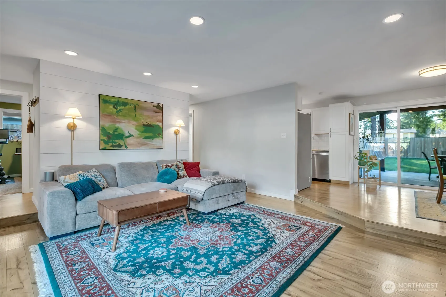 This charming, meticulously maintained 3-bedroom rambler is a true gem, tucked on a quiet dead-end street near an elementary school. Thoughtful updates and pride of ownership shine throughout. Enjoy seamless indoor-outdoor living with the custom 18×20 covered patio, featuring built-in speakers, skylights, heater, TV, and recessed lighting—perfect for year-round entertaining. The updated kitchen offers granite countertops, stainless steel appliances, and a classic subway tile backsplash. Stylish details continue with a custom barn door in the primary bedroom and an updated bath with quartz counters. Additional features include gas forced-air furnace, central A/C, RV parking, a large paved driveway, shed, firepit, and garden space—providing both comfort and convenience. Peaceful location just minutes from shopping, dining, and everyday amenities.