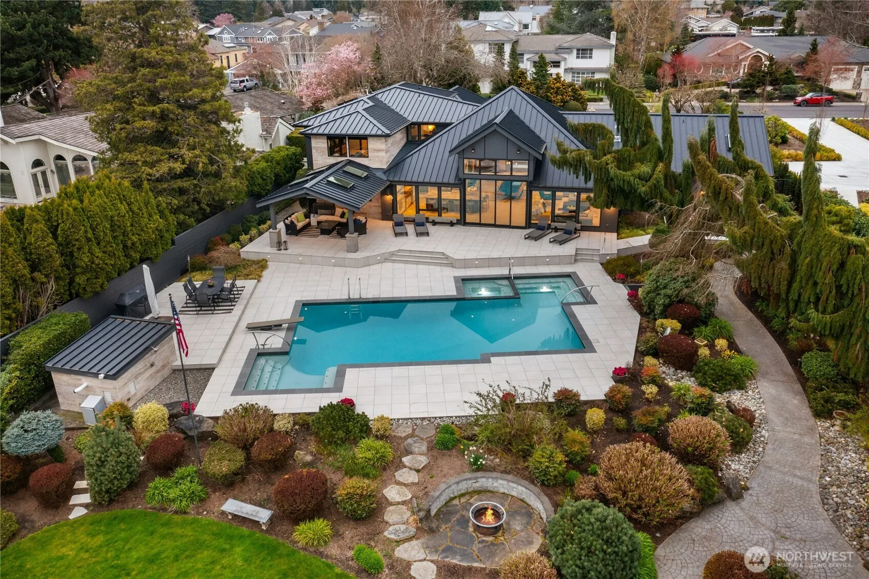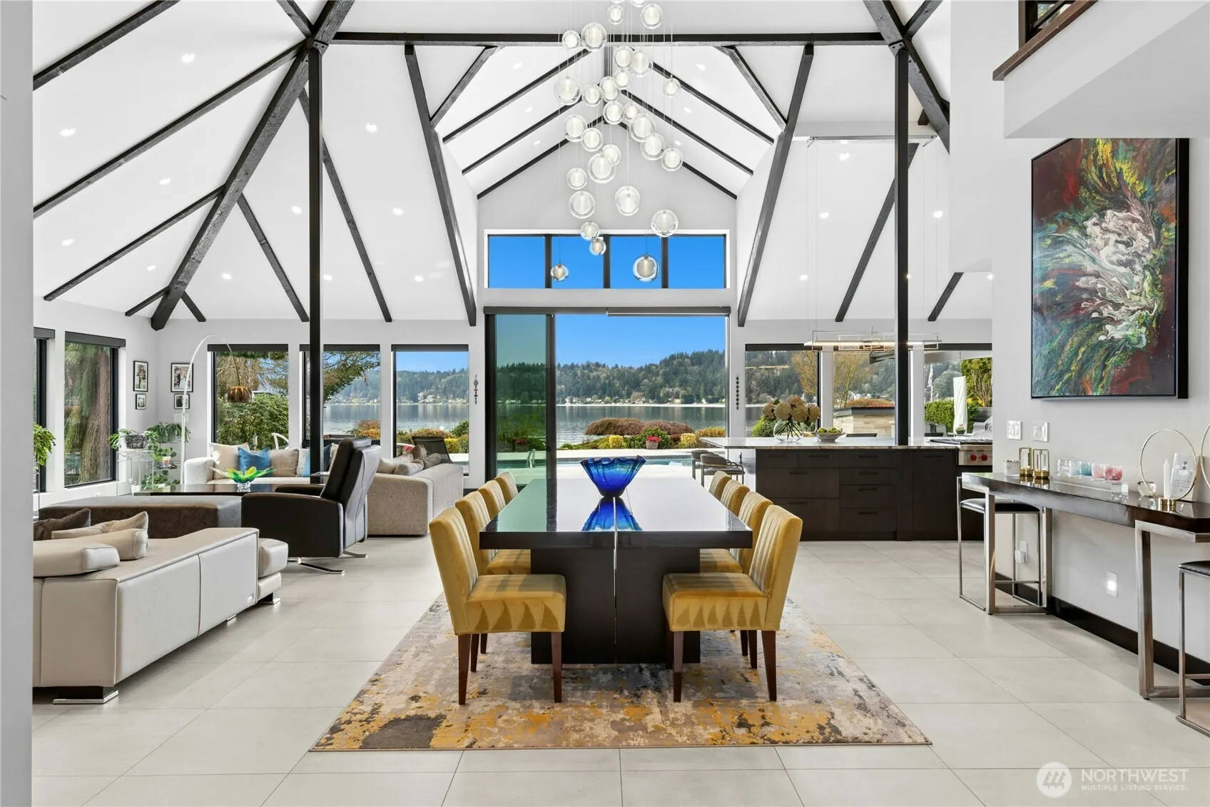Curate a lifetime of memories in this waterfront estate that can accommodate every possible phase of your life. 116 feet of waterfront on 1.6 acres that has been completely rebuilt & expanded in 2020. Extraordinary detail with the highest quality & luxury, designed for every lifestyle, this home lives perfectly on one level with no stairs. Two main floor primary suites, 4 bathrooms, office, laundry, large recreation room, kitchen, walk in butler’s pantry & grand entertaining spaces for every sized event that you can dream of hosting. Upstairs find a third primary suite, laundry, bath & two additional bedrooms. The dock is extraordinary & is rumored to be one of the largest in Lake WA. A massive 155 feet with deep water moorage that can accommodate an 80 foot yacht, (possibly more), sun stream 10,000 pound hydraulic boat lift, 2 jet ski lifts, platform lift & additional boat parking for visitors. The property also features a renovated inground 40-foot resort pool with diving board, hot tub & custom lights. Waterfront cabana for peaceful days by the lake, flat green lawn, outdoor fire pit & extensive patio areas both covered & uncovered are perfect for parties & large events. Elaborate gardens throughout, all on irrigation from Lake WA with multiple varieties of hydrangeas, rhododendron, flowering trees, seasonal bulbs & bushes. Privacy is ideal with a gated entrance & quiet dead end street. Oversized parking & a 3 car attached garage. List of extensive upgrades upon request.