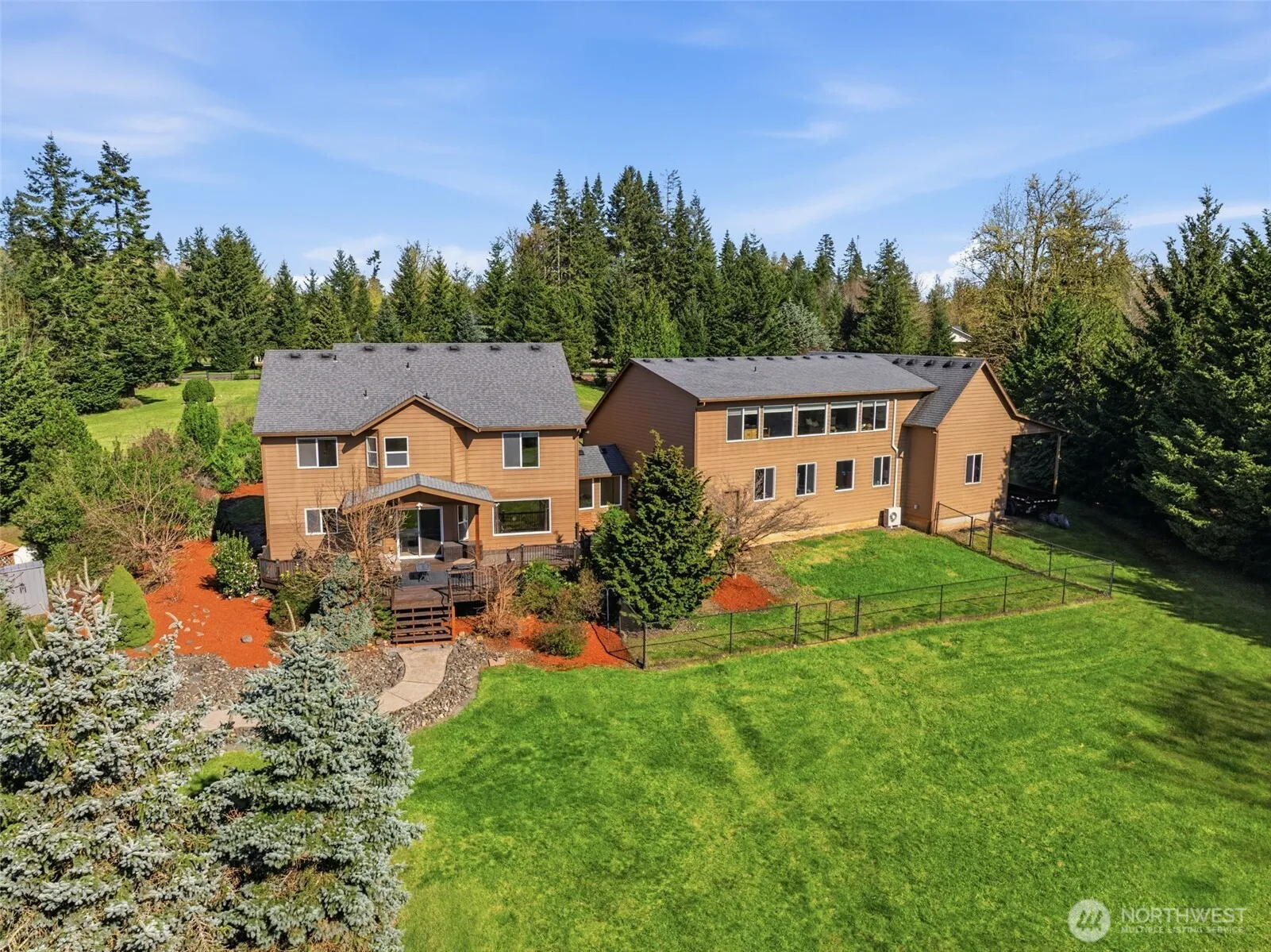 Located in the heart of La Center sits a premier community where you’ll find this 5-acre home w/perfect balances of NW Contemporary design and the functional freedom of a country estate! Whether you’re looking for a sophisticated multi-generational setup or a professional-grade hobbyist space, this property delivers on every level. The 2,468 square-foot primary residence is a quality-built home featuring two-story entry, an abundance of viewing windows showcasing the fabulous greenery surrounding the property & inviting the outdoors in! The efficient main kitchen has gorgeous granite counters & Italian-imported backsplash, high grade cabinetry includes pull-out, soft close drawers & doors, kidney-lazy-susans, eating bar, pantry & tile floors. Lovely porcelain stove adds ambience to the large great room that walks out to the spacious covered deck. From there, find your way out to a 30’ stamped concrete firepit area to unwind & take in those beautiful NW evening skies. The SHOP will astound – 12’ door, 10’ door, 9′ door, storage loft & a wine room; stairs w/accessible lift lead to the upper level where privacy meets proximity in the 1200-square-foot guest suite complete with its own high-end amenities; ideal space for long-term guests offering the same thoughtful design as the main residence, ensuring comfort without compromise -full kitchen, ¾ bath w/heated floor & laundry w/great room, 650sf of storage & amazing views! Bubbler rocks, sprinkler system, circle drive & more!