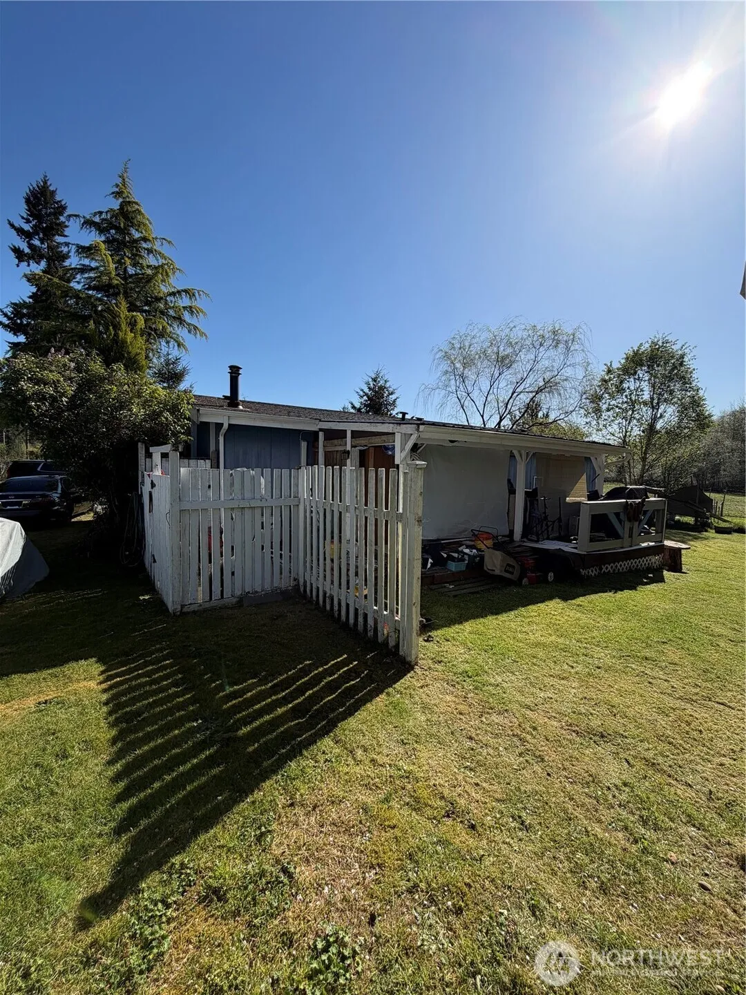 Charming & Move-In Ready on a Spacious .25 Acre! This 2 bedroom, 2 bath home offers comfort, style, and room to enjoy the outdoors. Step inside to a bright, open layout, a spacious living room perfect for relaxing or entertaining, and a welcoming kitchen with eating bar. Thoughtful updates throughout include a built-in china hutch adding both character and functionality. Enjoy outdoor living year-round on the large covered deck overlooking the generous yard with fruit tree, garden space, and plenty of room to personalize your own outdoor retreat. Additional features include, utility shed for extra storage, and secured runner & tie downs. Situated on a quarter acre with shared well expense, this property offers space, value, and lifestyle opportunity all in one. A must see!