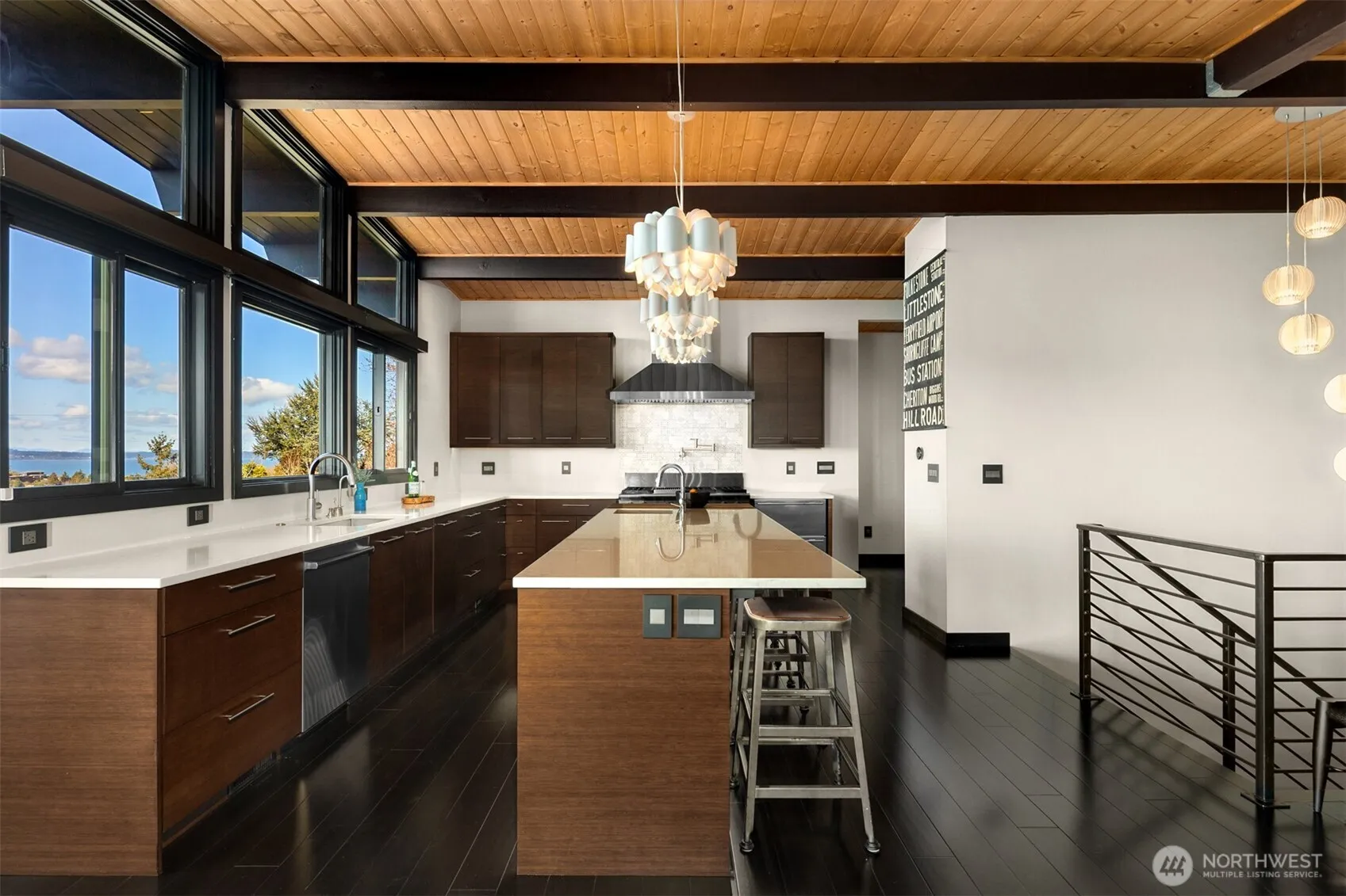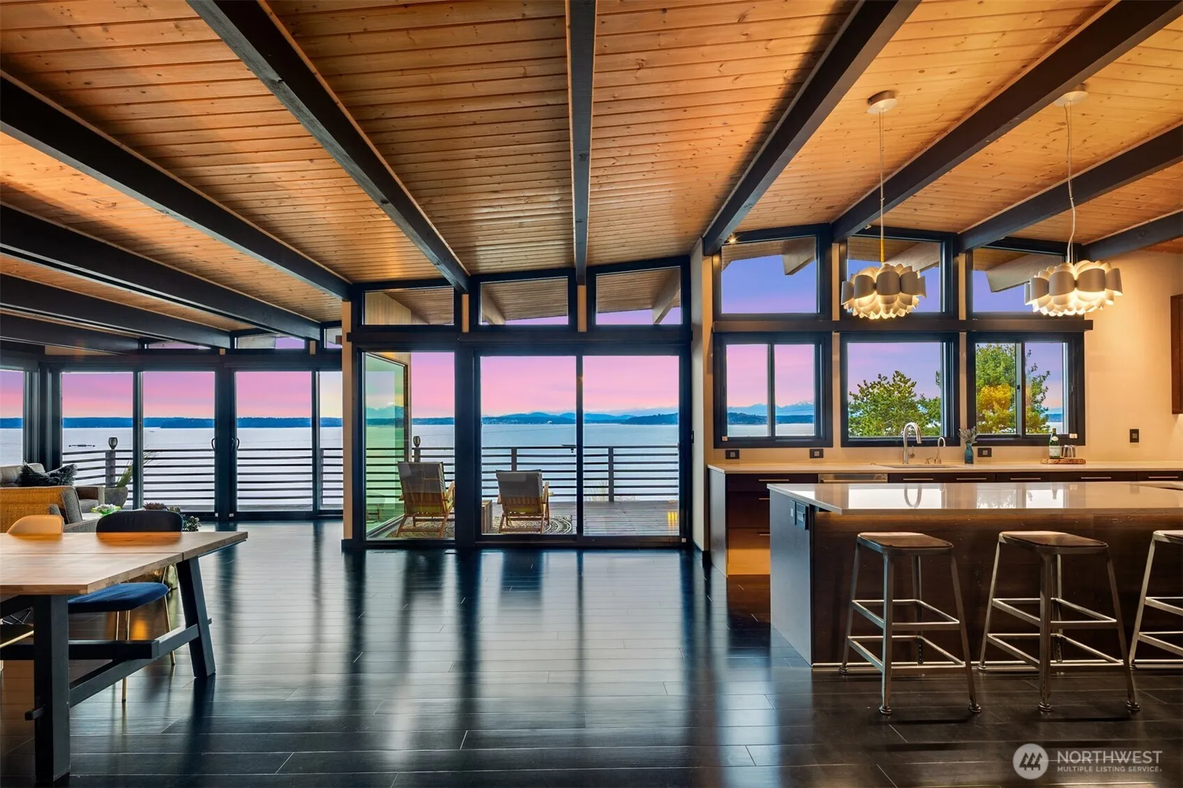 VIEWS! The view is the reason you’re here. Perched above Alki on a rare street-to-street lot, this reimagined mid-century modern captures sweeping 180-degree panoramas of the Olympic Mountains rising beyond Puget Sound. Floor-to-ceiling windows keep the horizon in constant focus, sunlight shifting across the water by day, ferries gliding through the Sound at dusk, sunsets that stop conversation. Thoughtfully rebuilt to preserve its architectural integrity while elevating comfort and performance, clean lines, natural materials, and open sightlines ensure the architecture never competes with the landscape—it frames it. The main living spaces flow effortlessly, designed for gatherings large or small. A chef’s kitchen anchors the home with state-of-the-art appliances. Downstairs, full-height glass opens to an expansive patio and mature landscaped grounds. Private, quiet, and sheltered. Spa-inspired baths, including a steam shower, offer a restorative retreat. Radiant heated floors, a new roof, and seismic upgrades provide lasting confidence behind the walls. Private. Architectural. Unforgettable. Views like this rarely come available.