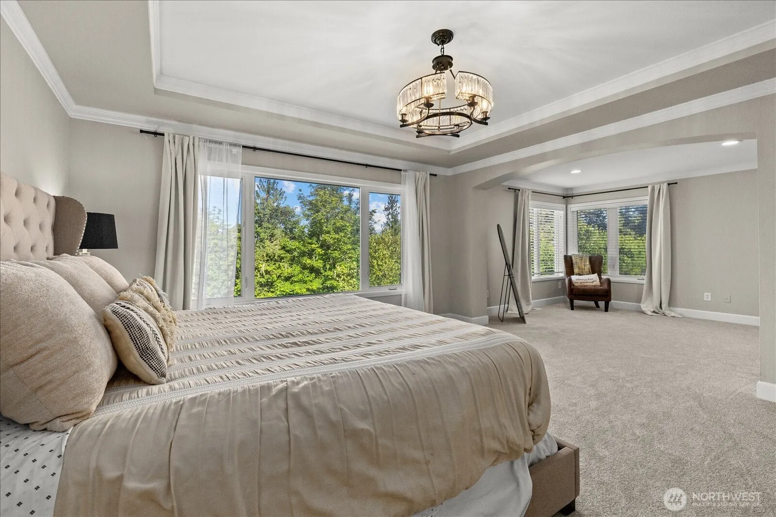 Experience elevated living in Aldarra with this extensively updated 6,200+ sqft residence capturing sweeping mountain and territorial views from both the primary suite and expansive deck, creating a seamless connection to the natural surroundings. Thoughtfully remodeled to meet modern expectations, the home features a brand-new roof, recently updated kitchen with refined cabinetry, and fresh interior and exterior paint, delivering a move-in-ready experience rarely found at this scale. A standout feature of this Buchan designed Murray Franklin implemented home is the fully finished lower level — a rare offering in Aldarra — designed to provide true independent living flexibility. This level includes a private suite with full bath, an additional bedroom or gym space, and an expansive seating and recreation area, making it ideal for multigenerational living, extended guest stays, or a private retreat environment. The redesigned deck enhances indoor-outdoor flow while maximizing the home’s scenic outlook, creating an inviting setting for entertaining or quiet evenings enjoying the views. A rare 4-car garage provides exceptional functionality for car enthusiasts, storage needs, or hobby space. Situated in the prestigious Aldarra community, this home offers a compelling combination of size, meaningful updates, scenic views, and highly functional living spaces rarely available in today’s market. Seller is a licensed real estate broker in the State of Washington