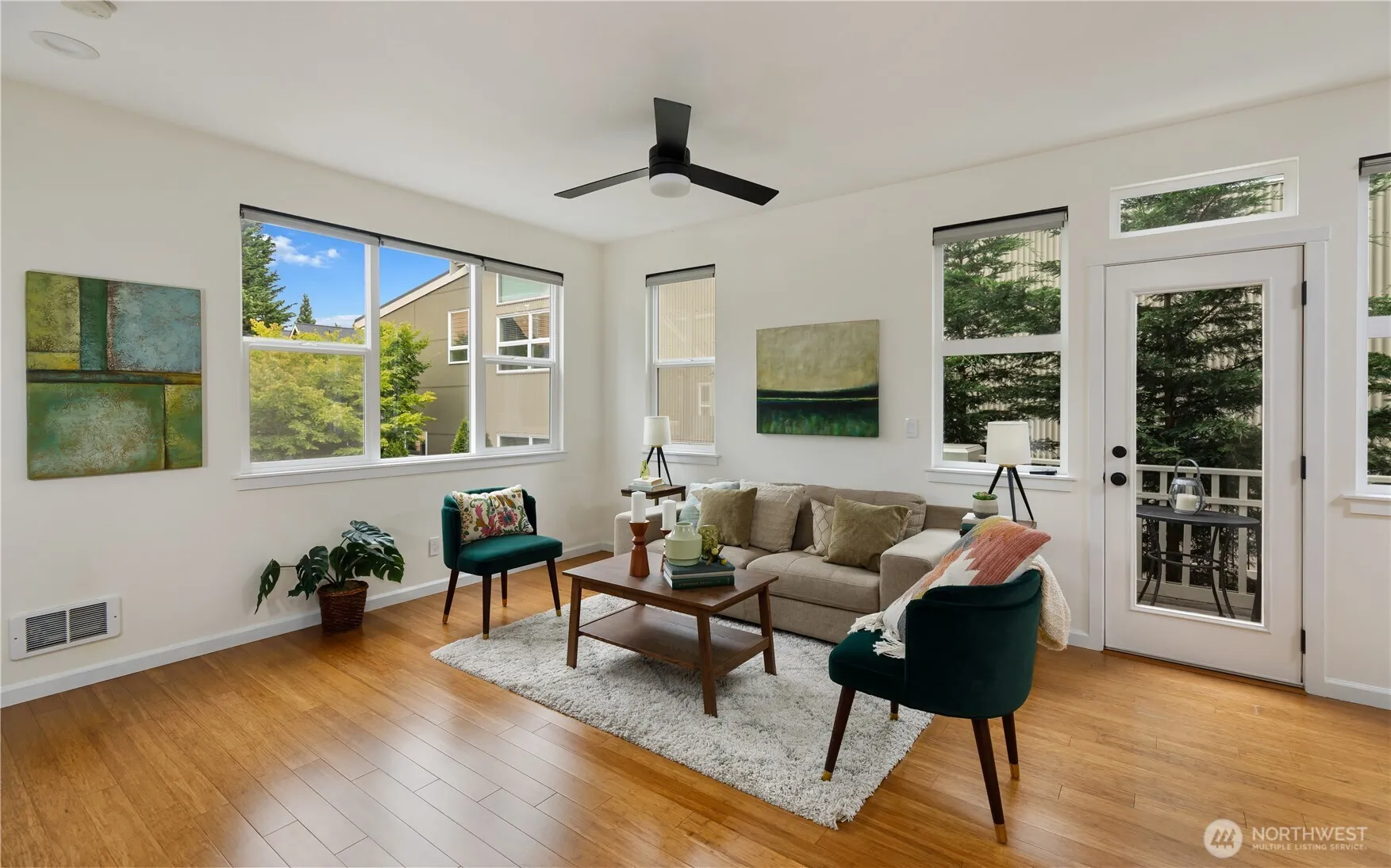 Walk to the Seattle Ferry from this premier commuter location in the heart of Winslow. Just blocks from the ferry terminal, this beautifully updated end-unit townhome offers low-maintenance island living with effortless Seattle access, which is ideal for today’s hybrid work lifestyle. Enjoy peaceful Bainbridge surroundings with seamless city access and unbeatable walkability right outside your door. Located in sought-after Winslow Mews, this light-filled home features two Bedrooms plus a Dedicated Office, creating a flexible and functional work from home layout. Vaulted ceilings, skylights, and expansive windows enhance the open design, while engineered hardwood floors add warmth and style throughout. The updated kitchen includes quartz countertops, stainless steel appliances, modern cabinetry, and generous prep space, flowing into the living and dining areas. Perfect for everyday living and entertaining. Relax on your private balcony and enjoy the community park within the Mews. An attached garage with new epoxy floors supports a true lock and leave lifestyle and offers flexibility for parking, storage, or a home gym. The rental cap has not been met, providing valuable rental and investment potential. Just moments from downtown Winslow’s shops, restaurants, waterfront parks, farmers market, and ferry terminal, this home defines convenience, flexibility, and commuter-friendly island living.