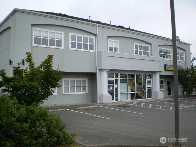 For lease 1,004 sf second level office suite with elevator and 14 stall off street parking located in Old Town Silverdale, the only walkable area of Silverdale, one block from the waterfront on a highly visible corner with views of Dyes Inlet and Mt Rainier. Surrounded by shops, eateries and service businesses in a safe, well lighted area. Located in an attractive, professional building with excellent quality interior materials. Large windows and a high ceiling give a bright, spacious feel. The suite includes a large reception area, four offices (one of which features a private exit/entrance), a break room counter/cabinet area with a sink and space for a mini-fridge and two storage areas. Elevator and ADA compliant rest rooms in the common areas on each floor. Lease is partial service, not NNN. Rate does not include gas, electricity or internet.