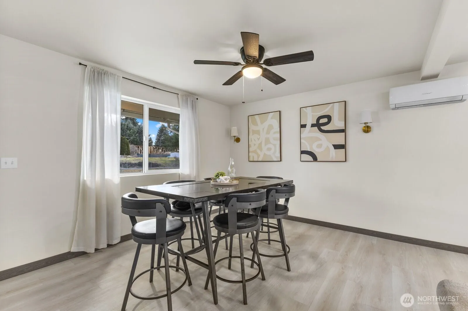 Welcome home to this like-new 2-story stunner featuring 2 bedrooms plus a spacious true third room with a closet, perfect for a bedroom, guest suite, or flexible living space. You’ll also enjoy an additional den/office, ideal for remote work, a playroom, or extra storage. With 1,617 sq ft of thoughtfully designed living space, the main level showcases an open-concept great room filled with natural light, a mini split for relaxed comfort, complemented by durable laminate flooring that seamless flow into the dining area and kitchen. The kitchen is designed to impress with slab granite countertops, stainless steel appliances, a breakfast bar, and a generous walk-in pantry that is ideal for both entertaining and everyday living. Upstairs, the primary suite offers a true retreat with a large walk-in closet and private ensuite bath. Also, the convenient upstairs utility room adds everyday ease. Step outside to a stunning partially fenced almost ¼-acre lot backing to a peaceful greenbelt with patios in both the front and backyard, creating multiple spaces to relax and unwind as this property offers rare privacy. Expand your imagination with a newer 3-year-old septic system sized for more bedrooms. Just minutes to parks, shopping, Fredrickson amenities, and easy freeway access, this home delivers comfort, functionality, and lifestyle all in one. Come experience the perfect blend of modern living and serene outdoor space. Home comes with a 1-Year Warranty!