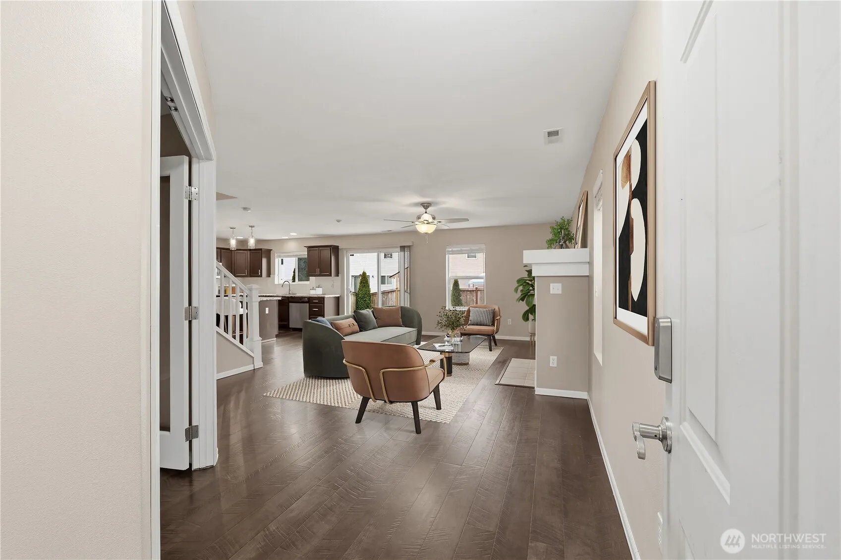 Thoughtful comfort, intelligently improved. In 2024 alone, the home received a new roof, new solar system, and a tankless water heater—substantial investments that bring efficiency and peace of mind. Every fixture has been carefully upgraded, creating a home that feels polished, current, and ready for years of easy living. With 2,336 square feet across two stories, the layout is both functional and inviting. The main floor features a formal dining room, a granite island kitchen with stainless appliances and full-height backsplash, a welcoming living room with fireplace, and a private office behind French doors. Upstairs, three bedrooms include a spacious primary suite with dual vanities and private bath, along with a versatile great room ideal for media, fitness, or relaxation. A fenced, low-maintenance yard, two-car garage, and community park nearby complete the picture. Centrally located for convenient access to Tacoma, Puyallup, and everyday amenities, this is a home designed to make daily life easier—and better.