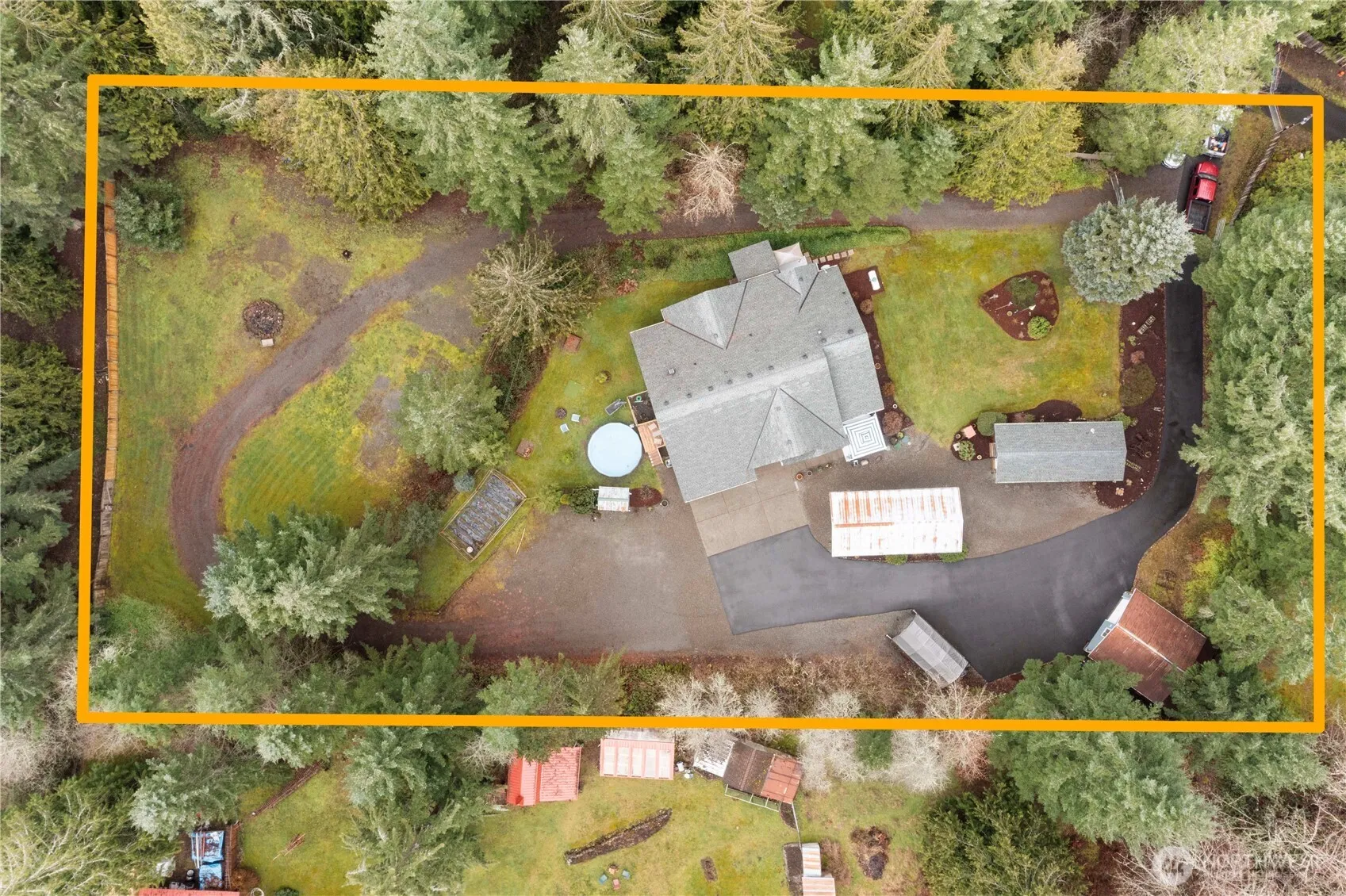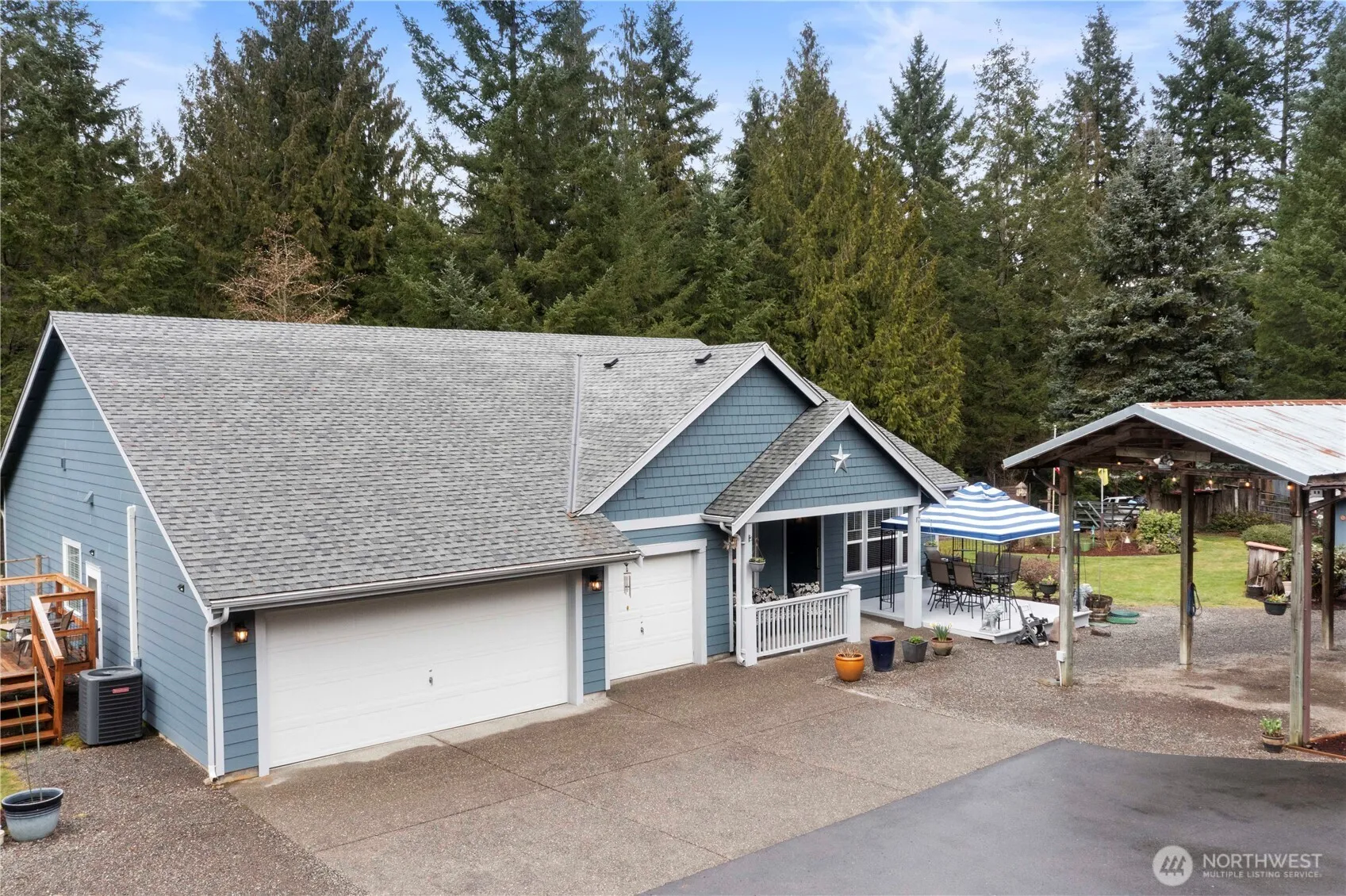 Seclusion awaits at this 1.25-acre property with a beautiful 1,997 sq ft. 3-bd, 2-bth rambler. The floorplan flows with a great room, open living room, and cozy gas fireplace. The brand-new quartz countertops, updated LVP flooring, and fresh paint create a modern feel. Even the laundry room is complimented with a mud sink and built-in cabinetry. French doors lead into an elegant primary suite with a 5-piece bath and walk-in closet, creating a peaceful retreat.Outdoors, lifestyle truly shines. A back covered deck and grill station, above-ground pool, custom side deck, pool shed, and battery-operated cleaner completes summer entertainment. Cultivate and create with the enclosed gardening areas, then relax on the front porch surrounded by nature.Well-equipped with a 3-car attached garage, an oversized covered carport, an additional 2-car covered carport with 8×12 locking storage rooms per side, a detached shop with woodstove, and a separate equipment carport. 3 RV hookups and a full circular driveway with dual gated access for easy passage throughout the grounds.Efficient upgrades provide peace of mind with a new roof (’23) and solar attic fan, water filtration system (’23), and a furnace and heat pump (’22) to ensure comfort in every season. A backup generator further enhances reliability.Privately positioned, this rare property offers the freedom of acreage living. It is a true lifestyle opportunity — space to entertain, room to store, and the serenity to unwind.