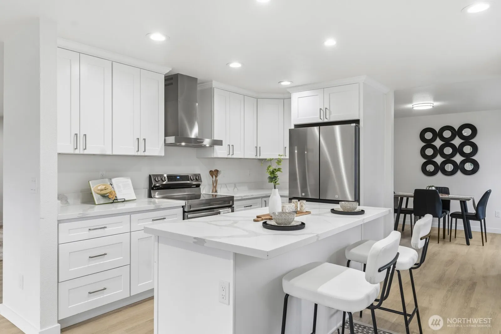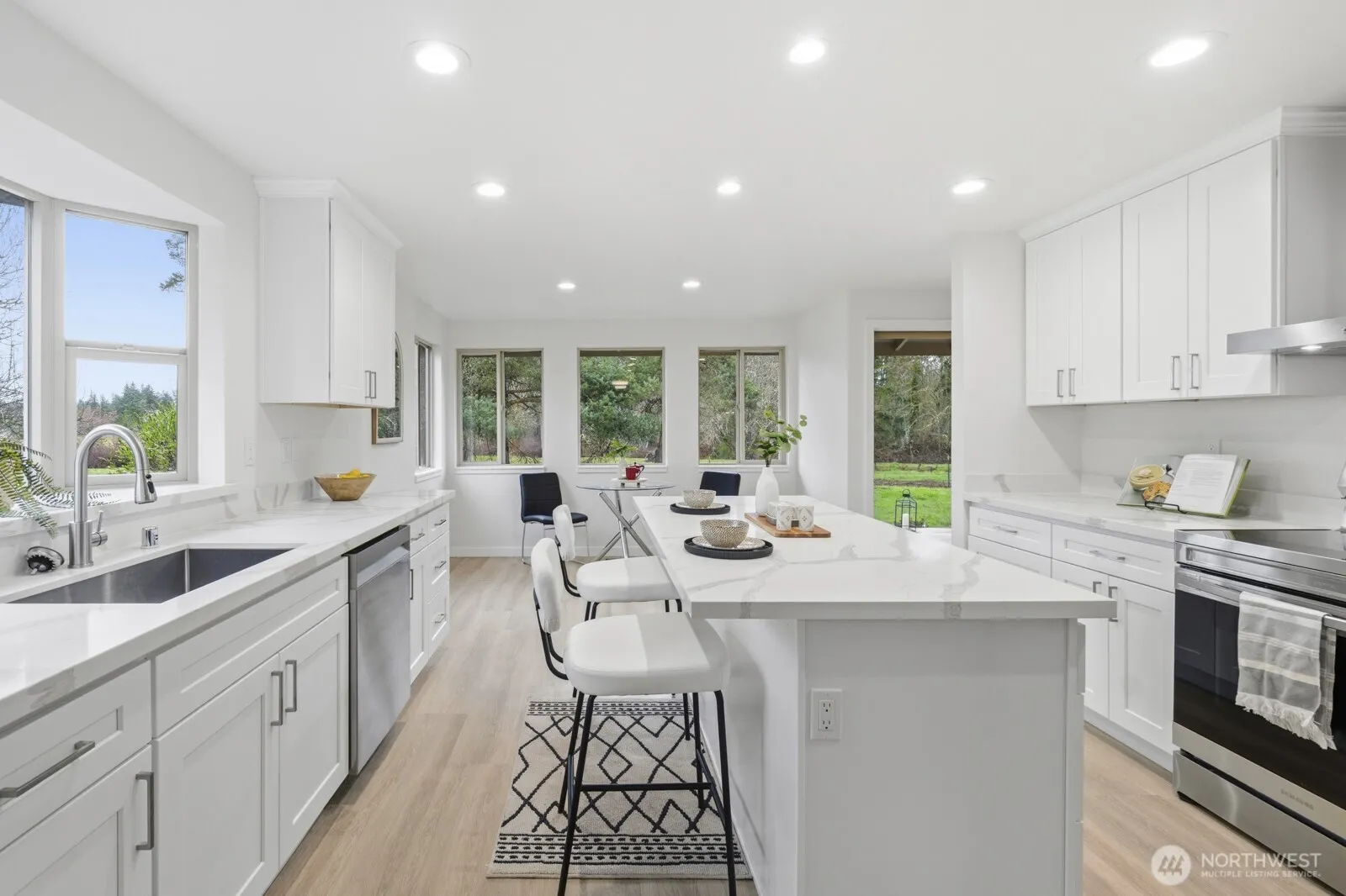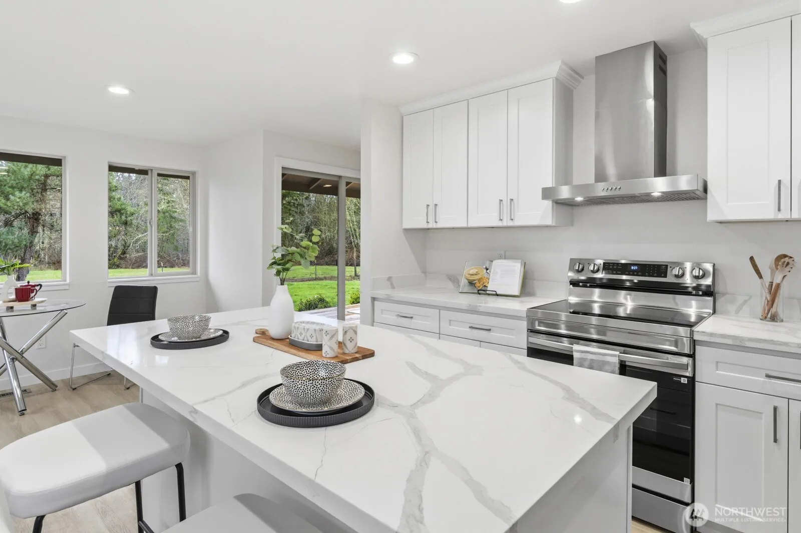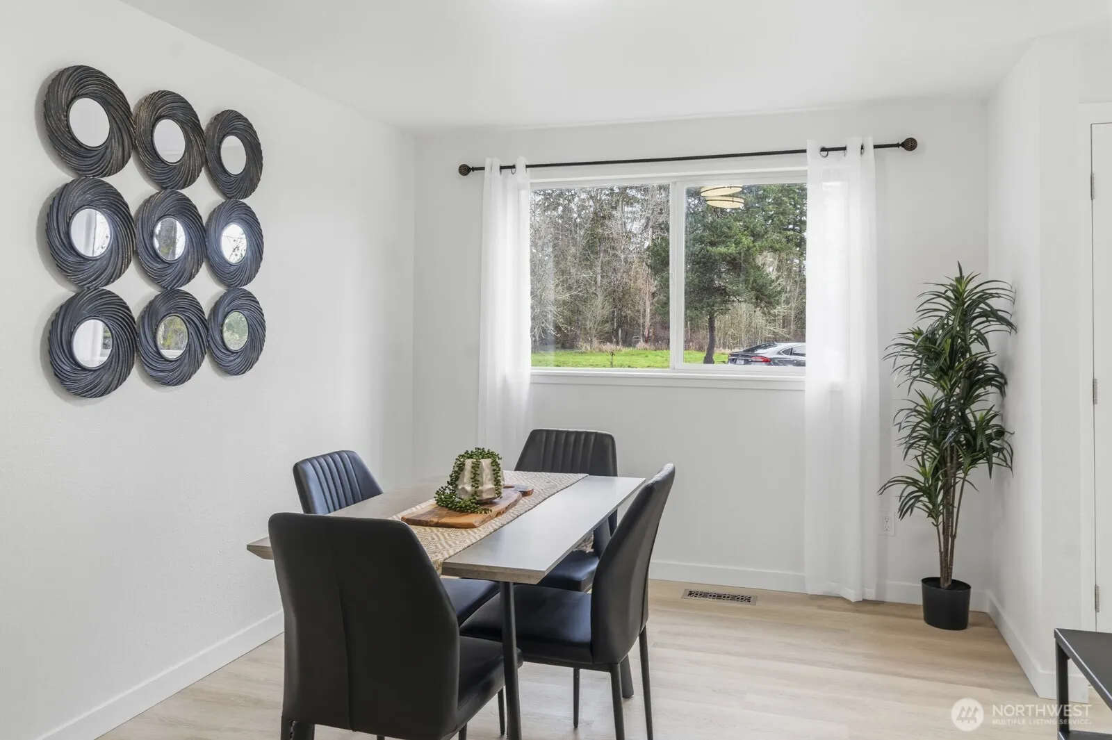 Enjoy life on this private retreat. With a large home, multiple outbuildings, and plenty of pasture land, this is a property that you buy to keep. Over 2 usable acres surround your home and land with trees and privacy making it hard to find your neighbors. But there is a peekaboo view of Mt Rainier. Property is fully fenced with additional pasture land allowing for a variety of uses. Step into the stylish single story home with large windows that pull the natural landscape inside that balance with the waterproof vinyl flooring throughout. The comfortable living room is augmented with the wood fireplace and real stone hearth. A large kitchen with breakfast nook gives plenty of room for entertaining or gatherings and includes additional pantry. Dining room off the kitchen is perfect as additional eating space or potential den/office. 3 large bedrooms each with window views that keep you smiling. Large shared bathroom and primary suite. Large covered back deck for bright or rainy day enjoyment. Enjoy the attached single car garage and detached 28×36 shop for a total of 1,344 shop space. The barn with tack room gives you the utility for the farm life you’ve always wanted. Brand new 30 year roofs on all structures. Warranty included. Home includes a new Heatpump and Furnace. Warranty included. Home and shop are preinspected, Septic has been pumped/inspected and the well and water has been tested and upgrades installed. This is the property to see.