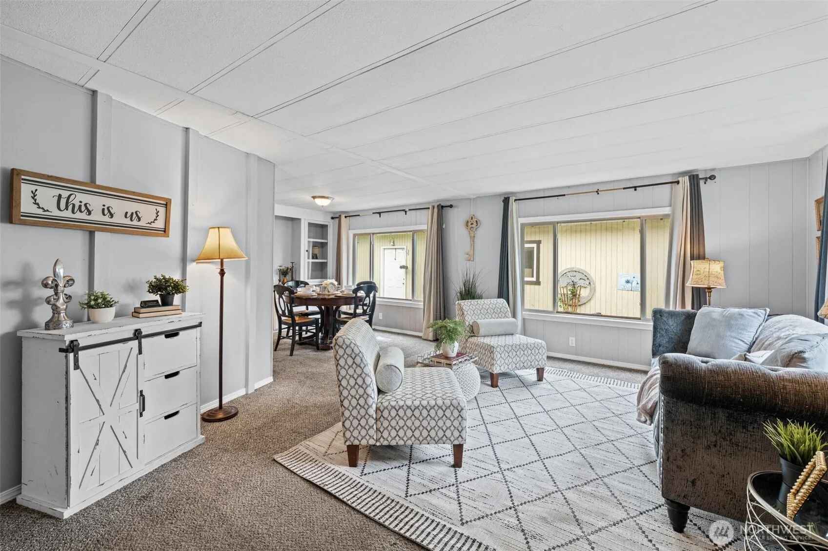 Be the first to check out this charming 3 bedroom home with a large detached garage/shop and on an acre lot. The entry way immediately showcases the extra large living room with wrap around dining room; complete with built-ins that offer extra storage. The ample kitchen is plenty spacious for all your meal preps, and has an informal dining area and bar seating for all your guests. The primary bedroom has a great en-suite bath, and both guest bedrooms are conveniently located near the full sized guest bathroom. The detached is large enough to be used as a full sized garage AND a shop. The property is full fenced and has 2 entry gates for your U shaped driveway. The lot is large enough that it has several uses and still offers more opportunity to bring your ideas, you can use the garden beds, add play toys, or create a haven for all your furry friends, just to name a few. It’s located near shopping, bus lines, and a hop, skip and a jump from the East Gate of JBLM. Call or text for a private tour and make this one yours before someone else does.