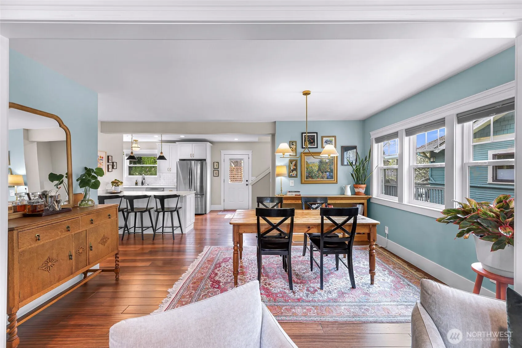 Set on a quiet, tree-lined street, this stunning Sunset Hill Craftsman blends timeless 1915 character with the confidence of a full remodel and foundation lift completed in 2016, along with thoughtfully curated high-end finishes throughout. A welcoming front porch sets the tone, leading into a light-filled living and dining area warmed by a cozy gas fireplace and rich designer colors. The chef’s kitchen impresses with a generous pantry and stylish coffee bar, perfect for gathering and entertaining. The main level also offers a spacious bedroom or office and a full bath. Upstairs, the home features a serene primary ensuite along with a second ensuite bedroom, providing comfort and flexibility. The daylight basement adds incredible versatility with a large media room, abundant storage, a fourth bedroom with full bath, and a bonus space ideal for a gym, yoga studio, or creative retreat. Enjoy seamless indoor-outdoor living as the main space flows onto a cedar deck, stepping down to a beautifully landscaped, south-facing fenced backyard. Complete with raised garden beds, planter boxes, and a large shed, it’s a true gardener’s haven. Additional highlights include a newly installed AC heat pump, EV charger, long driveway for ample parking, and hardwired internet throughout. Conveniently located near parks, shops, and local favorites, this home offers charm, comfort, and everyday ease.