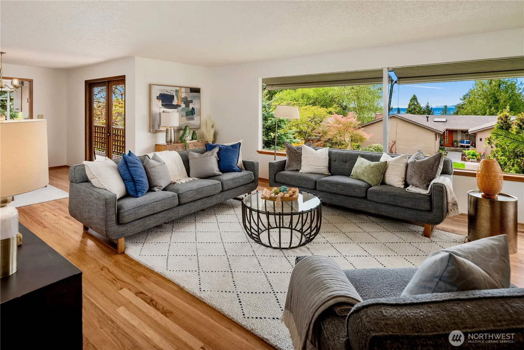 Hard to find and easy to love, this first-time-on-market Fauntlee Hills home blends classic charm with fresh updates in a coveted setting. Refinished oak hardwoods and abundant natural light create a warm, welcoming feel throughout, while the vintage kitchen and bathrooms offer a touch of classic charm. The main level features three bedrooms, a dedicated dining space and a cozy wood-burning fireplace. Enjoy peek Puget Sound and Olympic Mountain views, while new interior and exterior paint and refreshed landscaping enhance the home’s crisp, inviting presence. Large lower level showcases a wonderful family room, expansive bonus/utility room ready to adapt to your needs and full bath. The private patio provides the perfect outdoor escape, and the attached two-car garage with additional storage adds everyday ease. A rare opportunity to own a well-loved home with enduring character, thoughtful updates, and a location that truly shines.