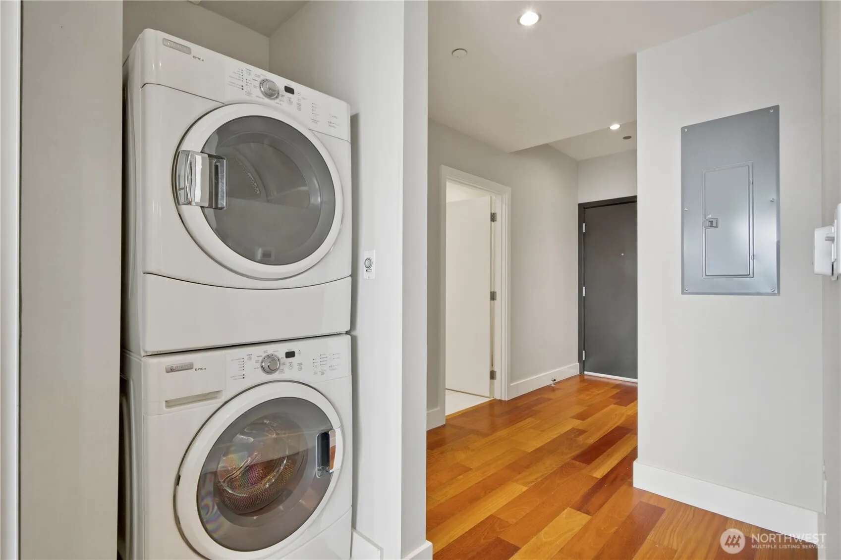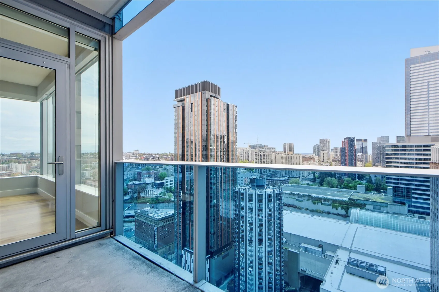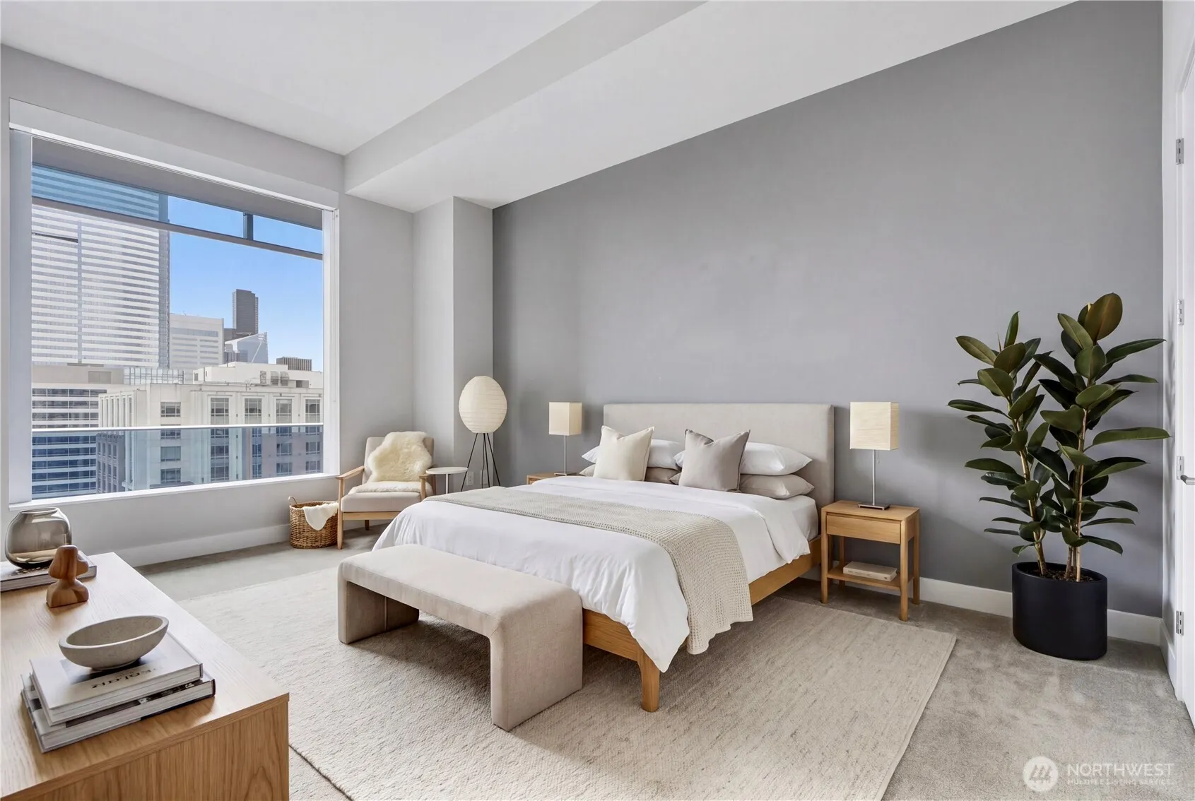 Experience elevated city living from the 29th floor at Olive 8, where sweeping skyline views, expansive windows, and a private balcony create a true in-city retreat. Thoughtfully designed for both comfort and style, this residence features an open-concept kitchen, a spacious primary suite, and a spa-inspired bathroom. Residents enjoy a full suite of upscale amenities, including 24-hour concierge service, a fully equipped fitness center, rooftop deck with BBQ area, dog run, and inviting resident lounge spaces. Set within the iconic Olive 8 tower above the Hyatt, with optional access to select hotel amenities such as the indoor pool, sauna, and hot tub. Ideally located in the heart of downtown Seattle, just moments from South Lake Union, premier dining, shopping, major employers, and Westlake light rail, offering effortless connectivity and vibrant urban living. Includes 1 assigned parking space and 1 storage unit—rare offerings in a premier downtown setting. No rental cap reported; buyer to verify current HOA rules and restrictions.