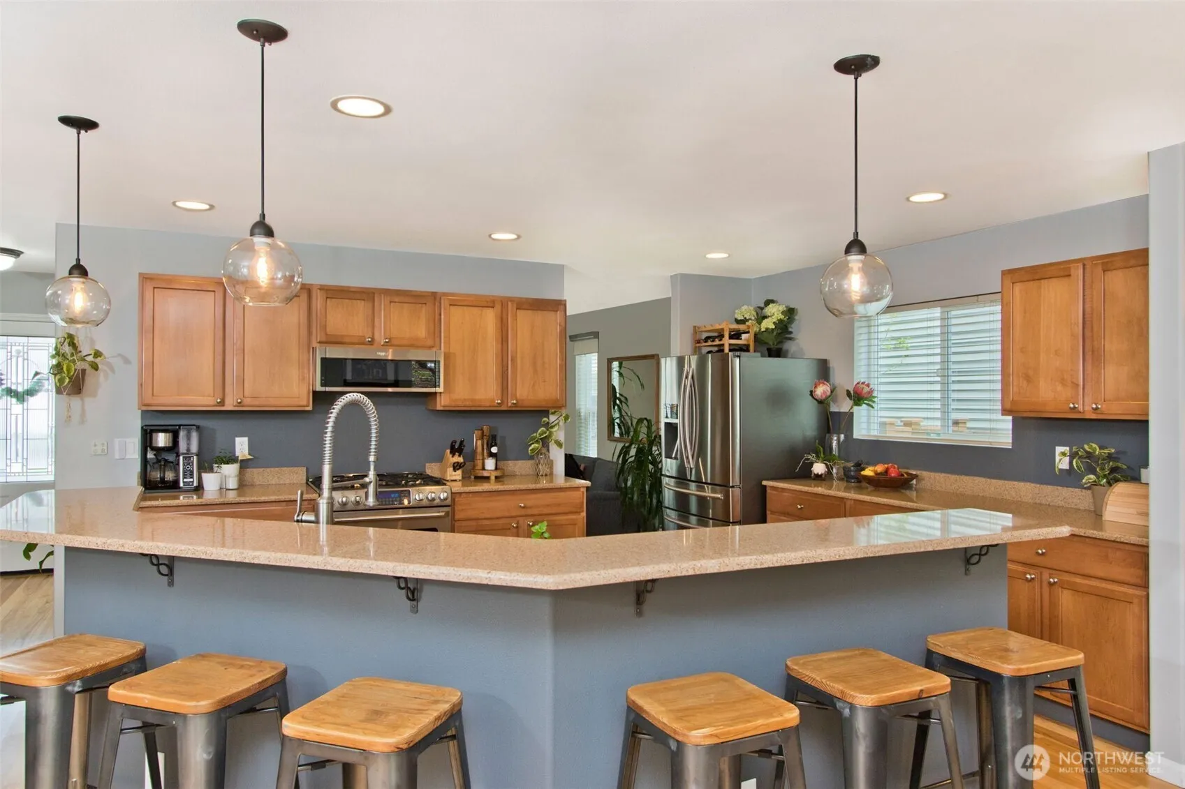 This beautifully maintained home captures everything residents love about life on the Ridge—light-filled living, modern comforts & effortless access to nature, parks & amenities. An inviting open-concept floor plan sets the tone, featuring rich hardwoods throughout & a chef’s kitchen designed for both everyday living & entertaining. Enjoy generous cabinet & counter space, a breakfast bar, stainless steel appliances, and a gas range that makes cooking a joy. Upstairs, the palatial primary suite offers a true retreat with an en-suite bath and spacious walk-in closet. 2 additional bedrooms, another full bath, & bonus room provide flexibility for guests, work, or play. Step outside to a large, flat, fully fenced backyard—your private outdoor haven. A pergola and paver patio create the perfect setting for summer gatherings, quiet mornings, or evenings under the stars. The oversized 3-car garage offers abundant storage for gear, hobbies, and vehicles. This home is also packed with smart, energy-efficient upgrades: solar panels that typically eliminate the electric bill from April through October, an electric car charger, a heat pump for year-round comfort including air conditioning, and a tankless water heater for endless hot water. Love the outdoors? Miles of walking trails weave through the Ridge, and you’re moments from parks, shopping, dining, and everything Snoqualmie has to offer. A must-see home in one of the area’s most sought-after communities—welcome to life on the Ridge.