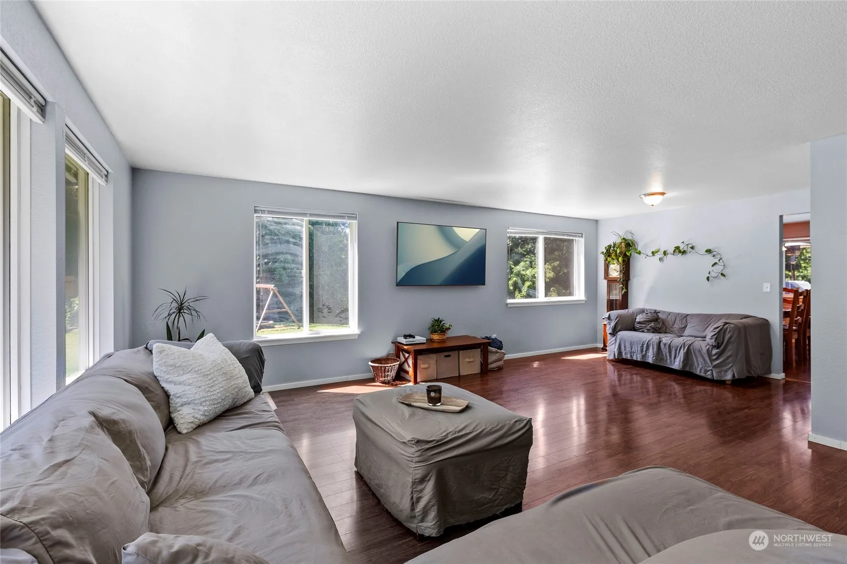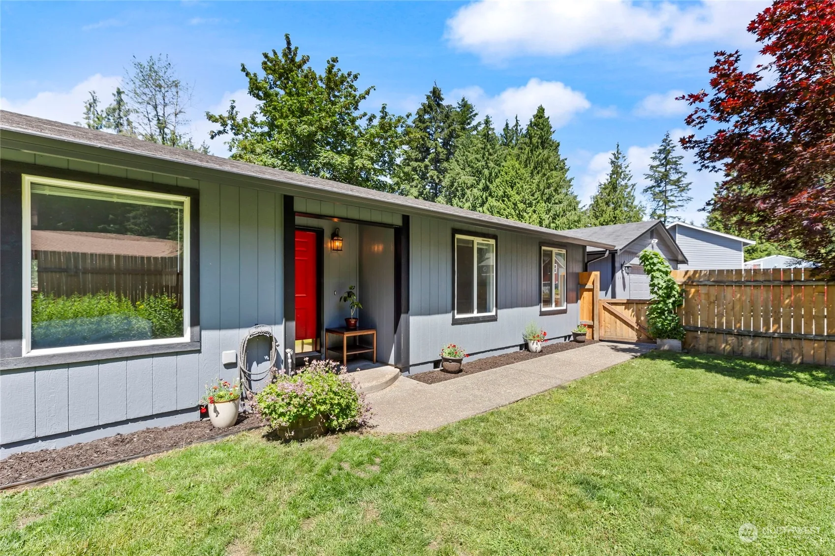 Stunning one of a kind property on 2.5+ acres. Additional 1000+ of unfinished square footage. Large detached garage 35×23. Front door opens to spacious living room with an abundance of natural light. Large open kitchen with dining space. Large primary bedroom has full bathroom and walk in closet. Kitchen remodeled in 2017, complimented by fresh paint interior and exterior, flooring replaced throughout, updated appliances and baseboard heaters. New gutters installed this year. Step outside to your oasis with fruit trees, garden beds, and well manicured landscaping. Enjoy summer evenings on the back deck. Playset with swings, fire pit, chicken coop, and dog run. ADU and Equestrian approved Buyer to Verify.