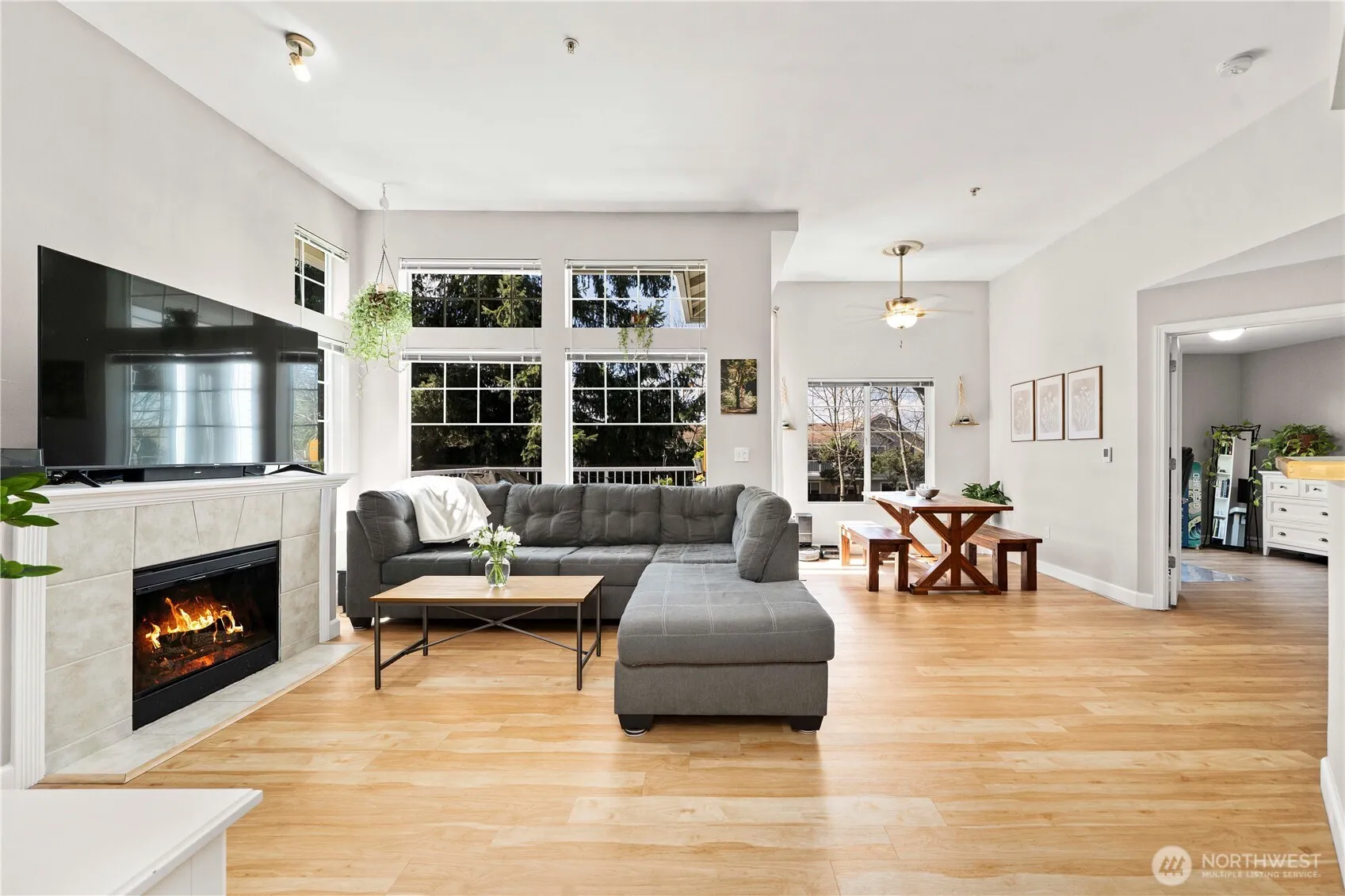 Meticulously maintained and ideally located in the desirable Lakeland Hills community, this beautifully appointed condo offers comfort, convenience, and an inviting open layout filled with natural light. The spacious living area is anchored by a charming gas fireplace with custom built-ins, creating a warm and stylish focal point for everyday living. The kitchen overlooks the living and dining spaces, making it perfect for entertaining and effortless day-to-day living.The generous primary suite provides a relaxing retreat with a walk-in closet, dual sinks, and a large soaking tub. Additional highlights include vaulted ceilings, LVP flooring, a private balcony, and all appliances included for a truly move-in ready opportunity. The oversized attached one-car garage offers ample storage space, adding both function and convenience.Enjoy all that Lakeland Hills has to offer, including nearby parks, walking trails, shopping, and restaurants, with easy access to major freeways for commuting.