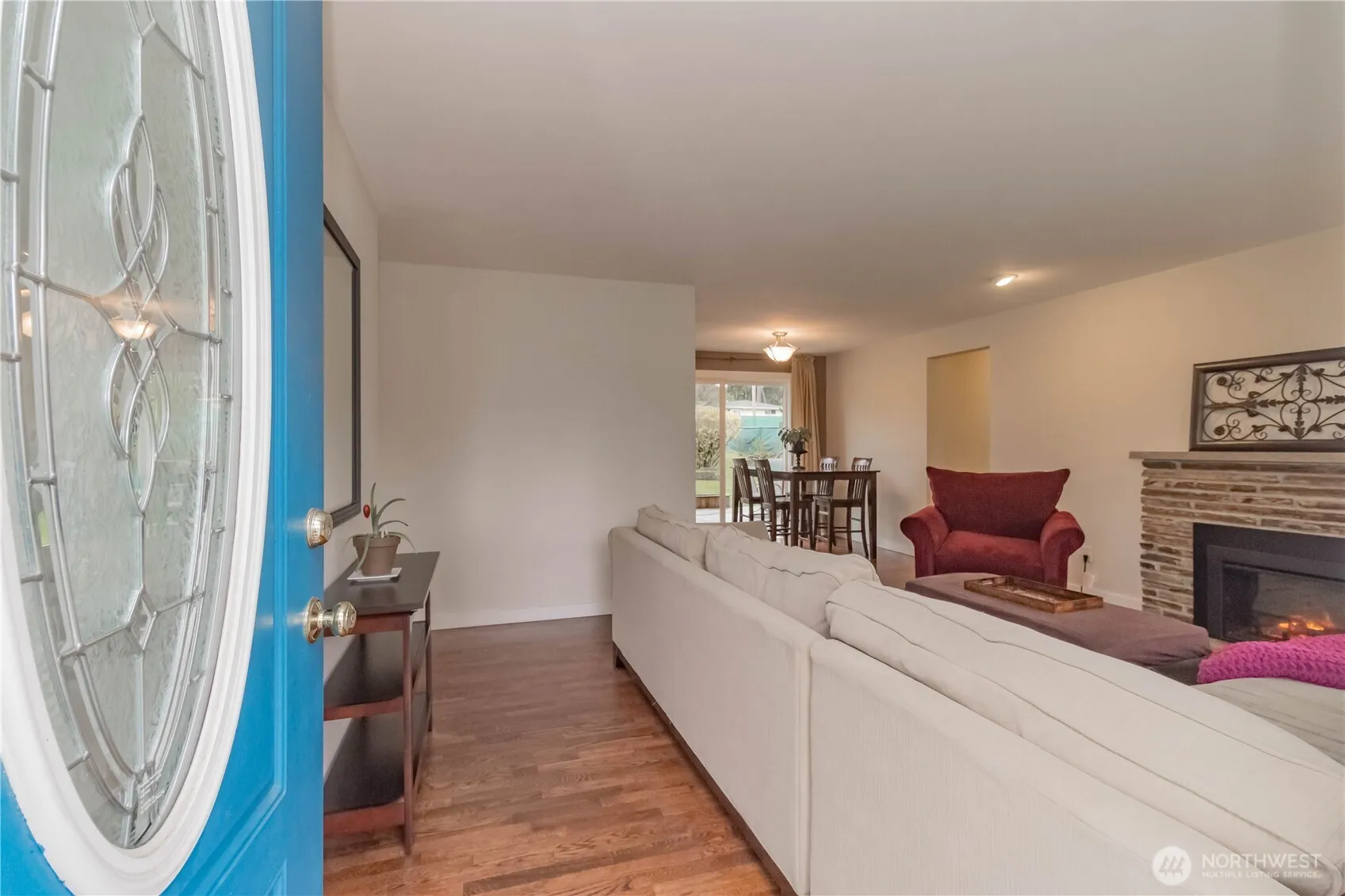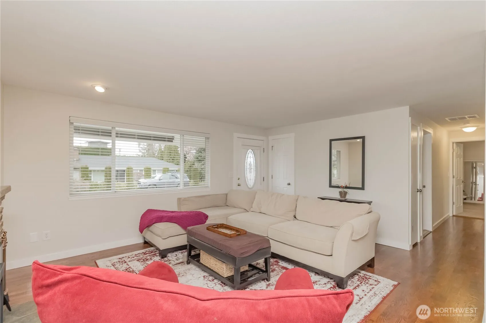 Beautifully remodeled 3-bedroom, 1.75-bath rambler offering stylish single-level living in a prime location! This move-in ready home features refinished original hardwood floors, an inviting electric fireplace insert, and major system updates including plumbing and electrical (2012) and a new water heater (2026). Spacious primary bedroom includes room for a home office or sitting area. Enjoy a fully fenced backyard with a large patio, ideal for entertaining, gardening, or relaxing, plus two outbuildings for extra storage. PSE easement behind property provides added privacy. Conveniently located near shopping, dining, and commuter routes. Turnkey home with modern updates and classic charm—don’t miss this opportunity!
