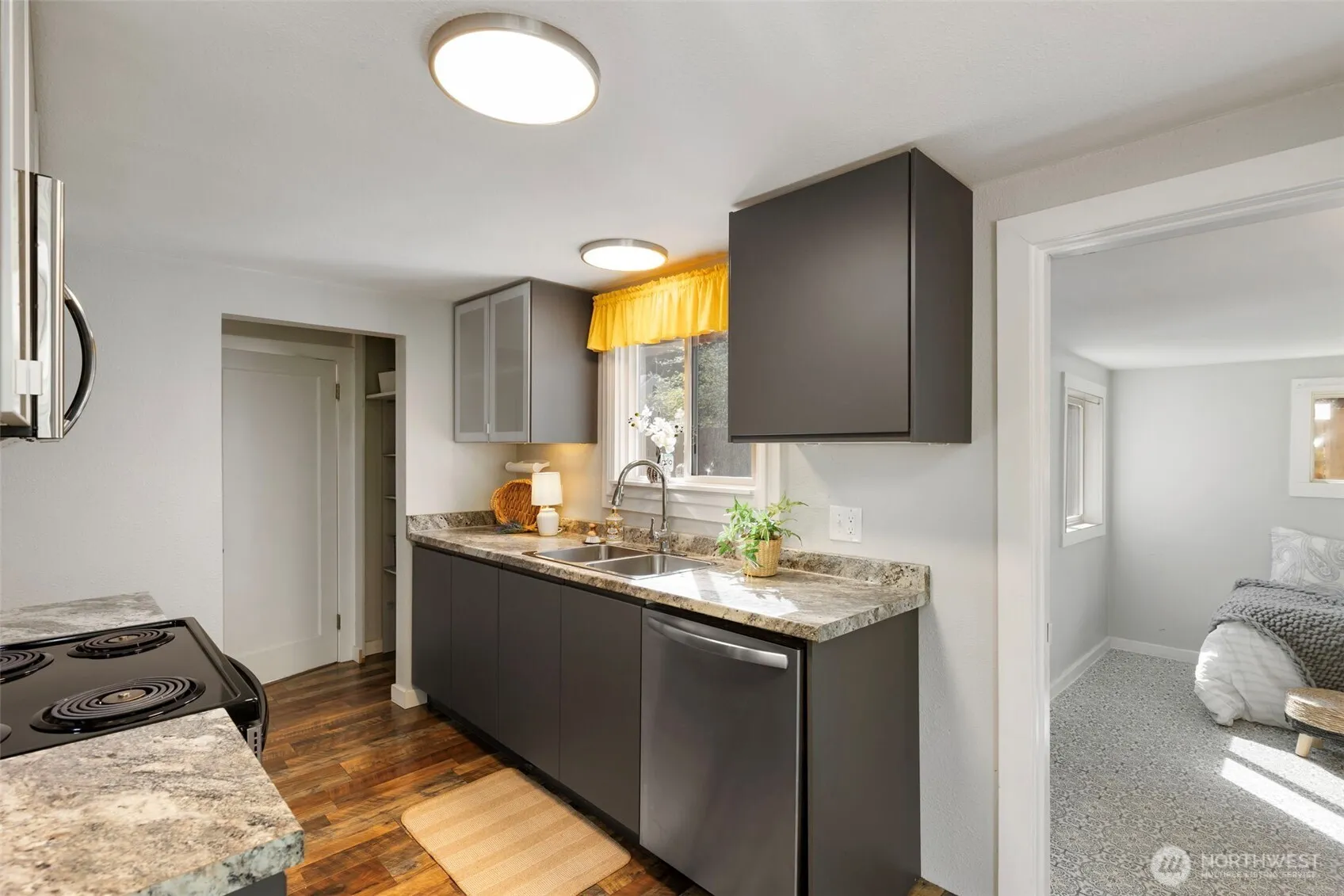 Charming single level cottage in Manette! Enter to the bright and open living area with beautiful hardwood floors. Modern kitchen with stainless steel appliances and extra cabinet space. Enjoy the large primary bedroom, full bathroom and bonus room! Perfect for an office or flex space. Private backyard with a raised garden bed and two spacious decks. Newer roof, detached garage & tall crawlspace for extra storage. Perfect location just minutes to downtown Manette, restaurants, shopping Navy Bases, Ferries, and highway for an easy commute!