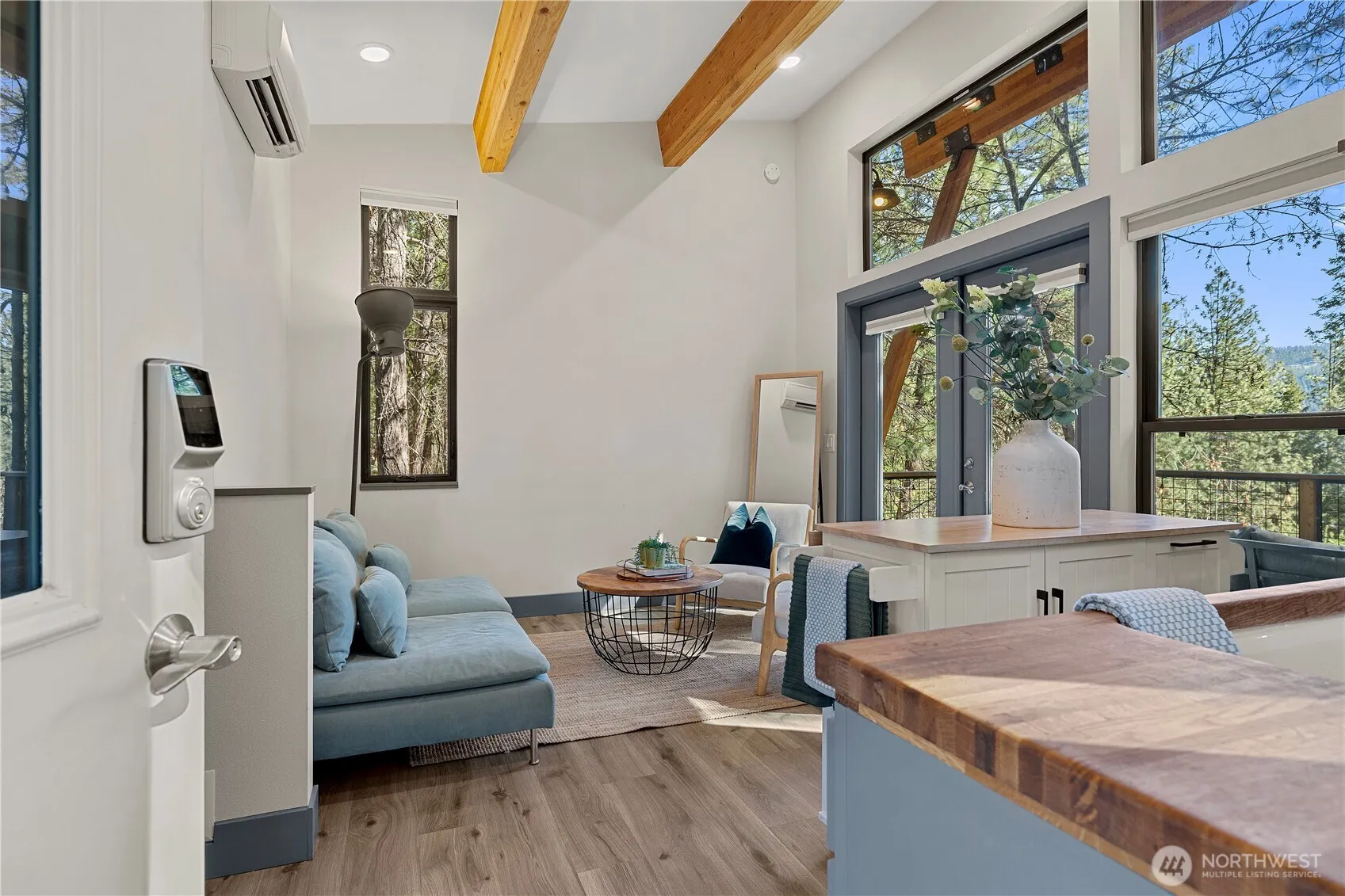 Discover a tranquil escape tucked away on 1.65 private acres, offering a rare blend of secluded nature and incredible convenience just five minutes from the heart of Leavenworth. This 444-square-foot sanctuary is designed to maximize its footprint, featuring an open-concept layout that invites an abundance of natural light throughout the day. The living area transitions seamlessly to an expansive deck, creating an ideal space for quiet mornings or relaxing evenings surrounded by a lush canopy of trees. With one bedroom and a 0.75 bathroom, this home serves as an efficient retreat for those seeking a minimalist lifestyle or a dedicated getaway in the woods. The surrounding landscape provides a genuine sense of privacy, creating a peaceful environment where the sights and sounds of nature take center stage. Whether you are looking for a weekend adventure base or a quiet place to call home, this property offers a unique opportunity to own a slice of the Pacific Northwest. Enjoy the best of both worlds with world-class recreation nearby and a private wooded haven to return to at the end of the day.