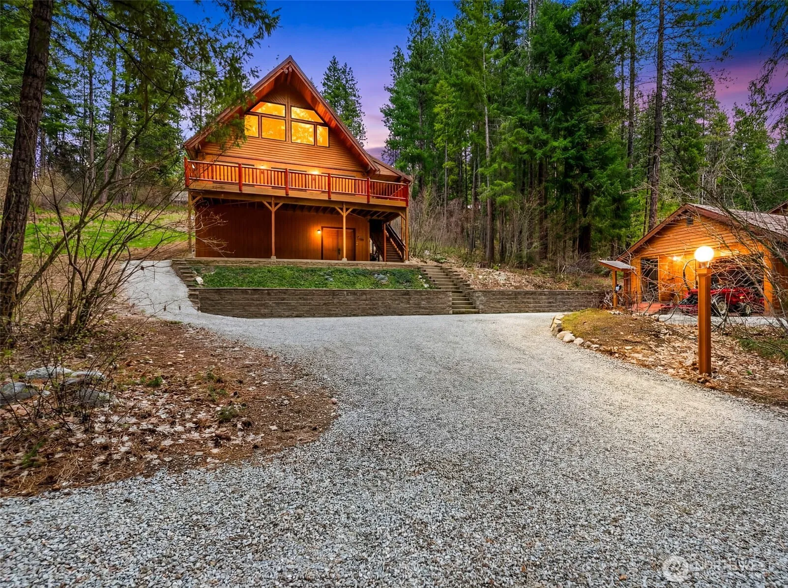 At the base of the Cascade Mountains, within the highly sought-after recreational community of Chiwawa River Pines, in the desirable Lake Wenatchee, lies a rare opportunity. This custom chalet, nestled among towering pines, creates a private and secluded atmosphere perfect for all seasons, is now being offered for the first time. The home’s strategic placement on the manicured .99-acre parcel optimizes the breathtaking, expansive mountain views that exist throughout the home. This meticulously maintained, thoughtfully designed 2166sf home, designed for entertaining with an advanced theatre room, boasts many custom features with open concept living. The upper floor primary bedroom, with a spacious bathroom featuring a soaking tub and soaring vaulted ceilings with large picture windows, brings the vast views inside and exudes comfort with a functional layout. The spacious upper floor guest bedroom, with nice separation of space, creates versatile living options and functionality depending on familial needs. The lower level offers abundant storage for seasonal gear, complemented by a covered patio providing vast mountain views in serenity. The detached 456sf improved garage/shop is ideal for the recreational enthusiast, hobbyist or outdoorsman that desires all of what this unique mountain community offers featuring exclusive gated access to the Chiwawa & Wenatchee rivers and direct access from the home to the Lake Wenatchee/Entiat trail system for seasonal exploration.