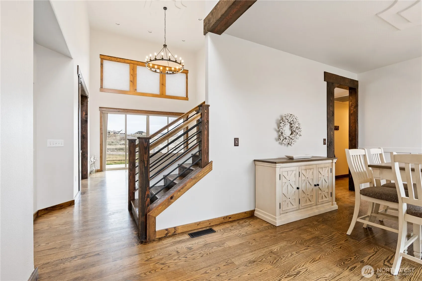 Gorgeous custom two-story home with a four-car garage in the highly desirable Dune Lakes community. Located in a secluded neighborhood with minimal traffic, residents enjoy access to a private park, exclusive lake access, and a private community boat launch. This beautifully maintained home offers 5 bedrooms and 3 bathrooms with mountain and lake views from the front of the home. The spacious primary suite features a fully renovated bathroom (2021) with heated floors, creating a relaxing retreat. Upstairs includes a versatile entertainment area, two bedrooms, a full bathroom with double sinks, and a large office with a closet—ideal for working from home or additional guest space. The living and dining areas are filled with natural light, showcasing vaulted ceilings and an open layout that flows seamlessly into the kitchen. The kitchen features a large island overlooking the living room, making it perfect for gatherings and entertaining. The home was professionally redesigned in 2022, including new paint, updated lighting, and refreshed styling throughout. Outside, enjoy a beautifully landscaped half-acre backyard featuring a fenced garden, reservoir views, and stunning sunrises, creating the perfect setting to enjoy the surrounding nature. Experience the Dune Lakes lifestyle with private lake access, a gated community boat launch and park, and scenic views.