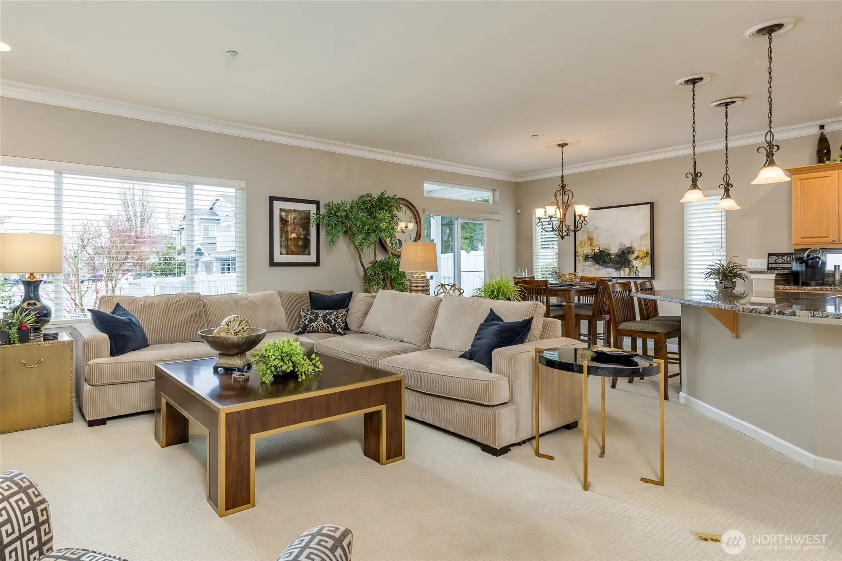 Experience luxury and effortless living in the prestigious gated 55+ community of Palisades at Lakeland. This meticulously maintained home captures your attention from the moment you arrive, greeted by an elegant front walkway with refreshed landscaping. Inside, you’ll find a masterclass in modern elegance with an open-concept floor plan that seamlessly connects the entry to the living & dining spaces. The refined kitchen has been updated with a massive granite slab island that serves as a beautiful centerpiece for meal prep or a quiet morning coffee. You’ll appreciate the stainless steel appliances, gorgeous hardwood floors, generous pantry, and convenient instant hot water dispenser. Whether you choose to enjoy a meal in the dining room or step through the slider to the partially covered back deck, fully refreshed in 2024, the transition between indoor and outdoor living is seamless and serene. Relax in the living room featuring stately crown molding and a cozy gas fireplace, or retreat to the spacious primary suite, complete with a walk-in closet and a beautifully updated 3/4 bath with dual sinks & bright skylight. A flexible den/office offers the perfect quiet workspace or hobby room, while the laundry/mudroom adds ultimate functionality with a utility sink, built-in cabinetry & beverage fridge. Enjoy a true low-maintenance lifestyle as the HOA manages all lawn care and landscaping. Welcome home to a peaceful, year-round retreat in a convenient Lakeland Hills location.