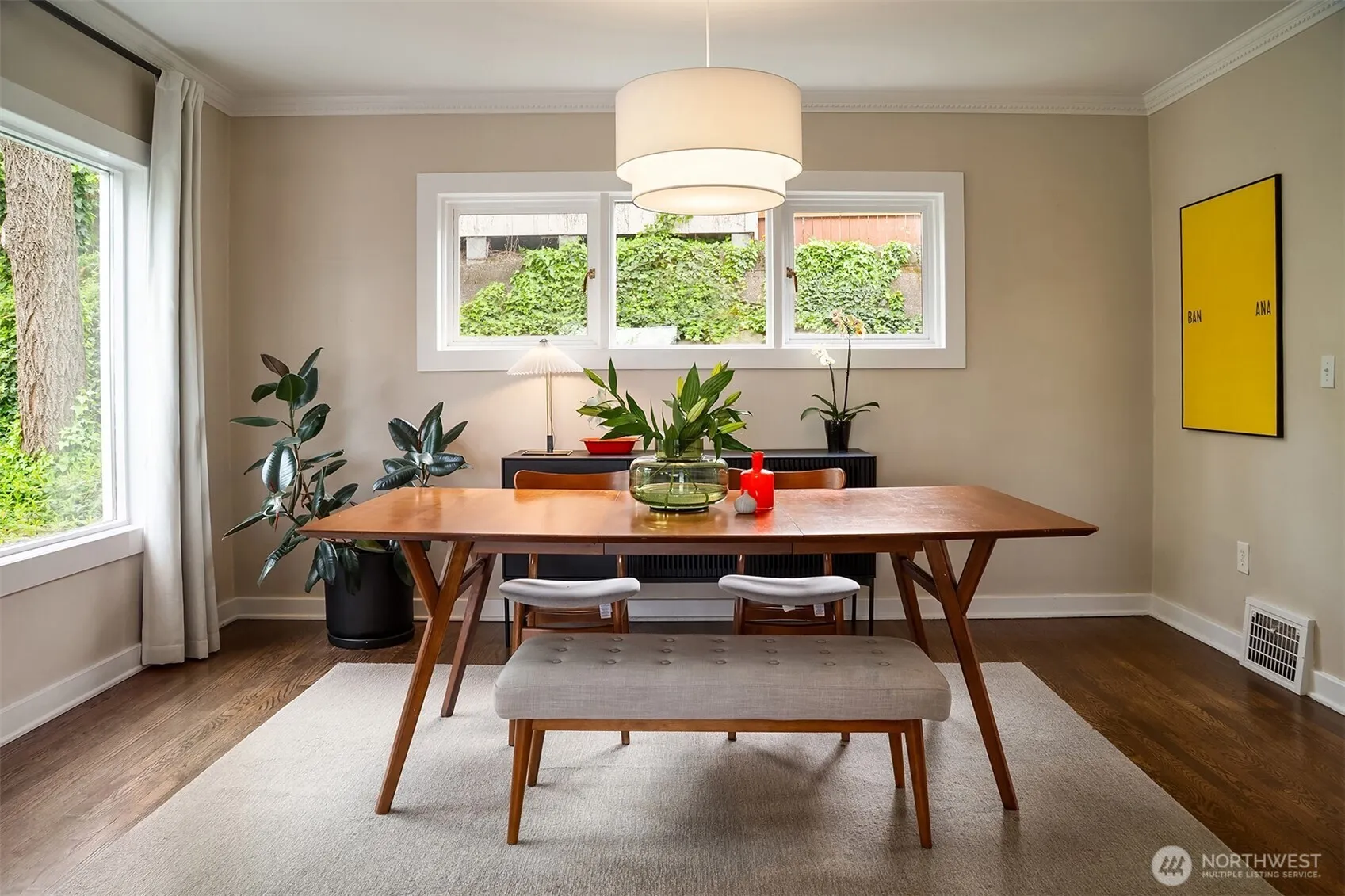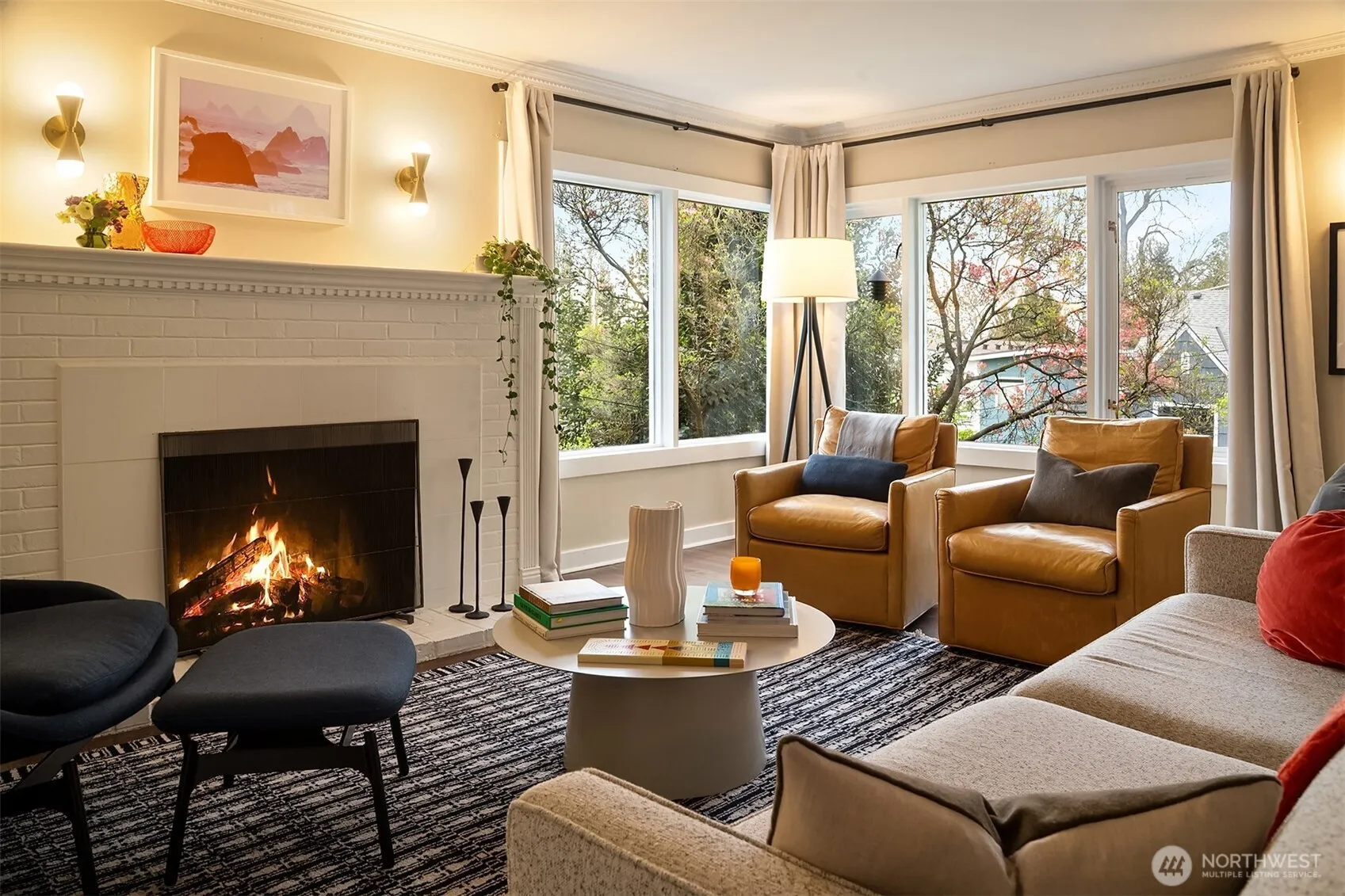 Sitting pretty, a quick jaunt from Greenlake and walking distance to the heart of Tangletown, this stylish Tudor exudes quiet luxury. Perched for privacy with an oasis-like backyard complete with sauna, lawn and garden beds and a party size deck. The “relax you’re home vibes” start as soon as you walk in. The light moves softly through the space, offering warmth regardless of season. The living room is anchored by peek-a-boo views and a beautiful fireplace with custom surround. The dining room opens to a dreamy kitchen and jewel-box breakfast nook with garden views. The main floor bedroom with Ralph Lauren vibes and a walk-in closet is right next to a stylish full bath. Upstairs delights with warm fir floors, tree-top views and 3 well-appointed bedrooms. The beautifully remodeled upstairs bathroom is as functional as it is pretty. And all this goodness is connected by a spacious upstairs landing charmingly lit by a stunning stained glass window. Soaring ceilings in the downstairs living room set the tone. And whether you want additional living space, a deluxe Airbnb, or guest quarters, the possibilities in the lower-level abound. The perfect home for multi-generational living. Separate laundry in lower and upper levels. In McDonald International attendance area. Dreamy.