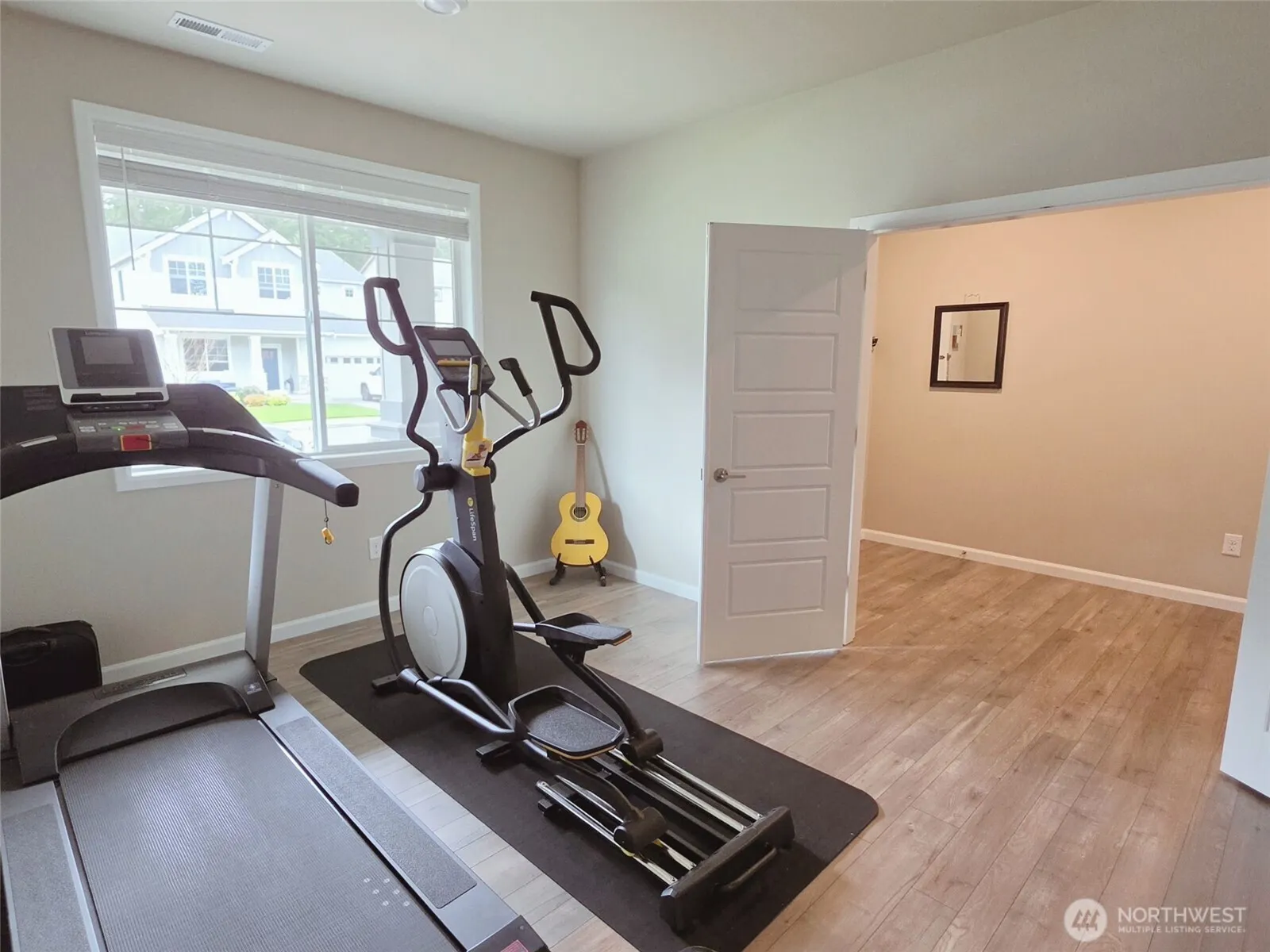 Discover this stunning, like-new Lennar resale that perfectly blends modern style, comfort, & functionality. Featuring 9-foot ceilings & a welcoming entry with an elegant spindle railing, this home offers a bright, open-concept layout ideal for today’s lifestyle. The main level includes a versatile office/den with French doors and durable LVP flooring, along with a guest bedroom and full bathroom—perfect for visitors or multi-generational living. The chef-inspired kitchen is designed for both everyday living and entertaining, featuring a gas range, double oven, quartz countertops, full-height subway tile backsplash, soft-close cabinetry, and a spacious walk-in pantry. Conveniently located within walking distance to Glacier View Junior High School and Emerald Ridge High School. Upstairs, enjoy a spacious loft, a convenient laundry room, and three additional bedrooms. The luxurious primary suite includes a comfortable sitting area and a spa-like ensuite with a 5-piece bath, tile shower, soaking tub, makeup vanity, oversized walk-in closet. Recent upgrades include a new A/C system and brand-new washer and dryer (2025), a tankless water heater, installed security cameras, and a dedicated Tesla Wall Connector—perfect for convenient at-home EV charging. Blinds and select gym equipment are also included. Step outside to a large covered patio, perfect for relaxing or entertaining, along with a side backyard. The home also features a 3-car garage with additional storage space.