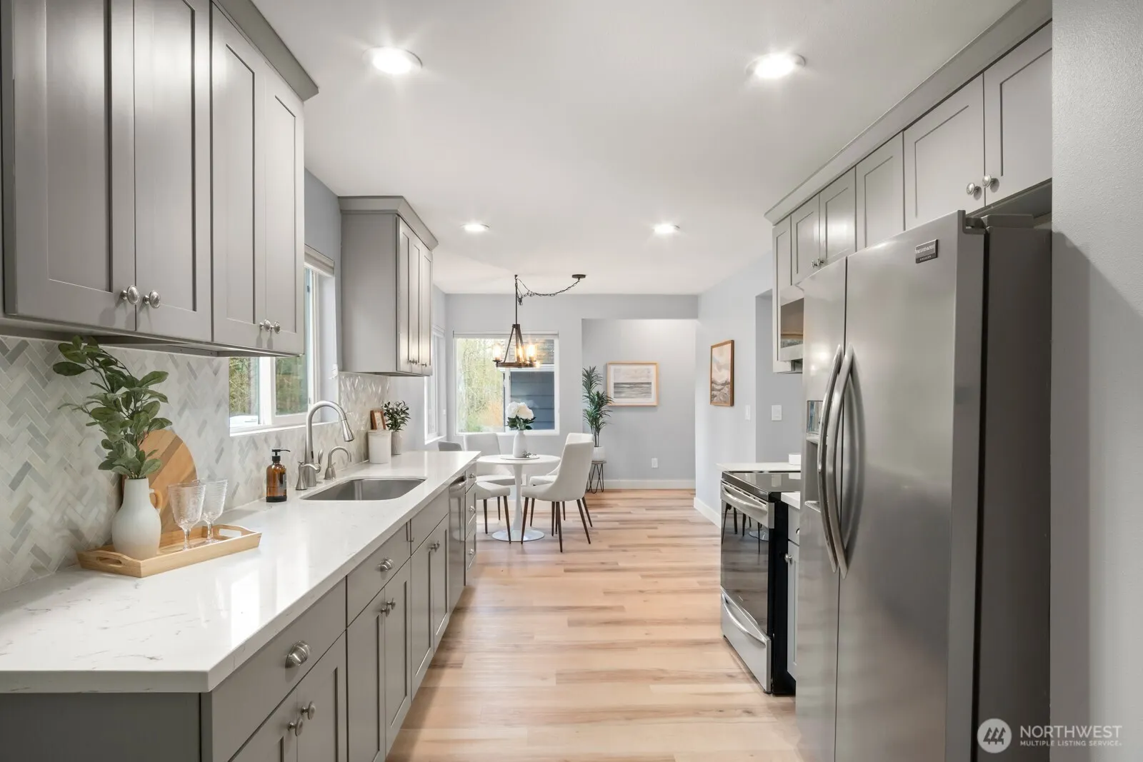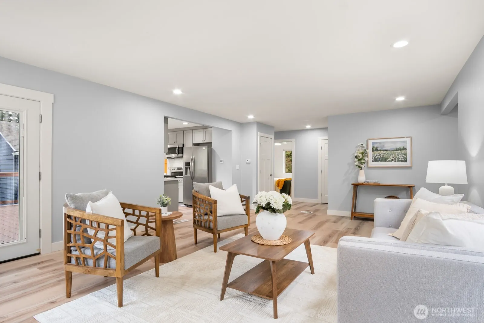 Situated on over 3 private acres, this tastefully remodeled 3 bedroom, 2 bath home offers an array of exceptional features. Enjoy the beautifully updated eat-in kitchen with quartz countertops and stainless steel appliances. Relax by the cozy fireplace in the living room or entertain under the stars on the new deck with a sparkling clean sunken hot tub. Other updates include fresh interior paint throughout, new trim, custom tile work in the beautifully updated bathrooms along with a new covered front patio. 2 car garage and extra detached work/shop/storage space in outbuilding, new roof in 2023, freshly painted exterior and new heat pump for year-round comfort. The spacious lower level rec room provides ample space for entertainment as well as a den/office, laundry room and plenty of flexible space to use or customize however you like.