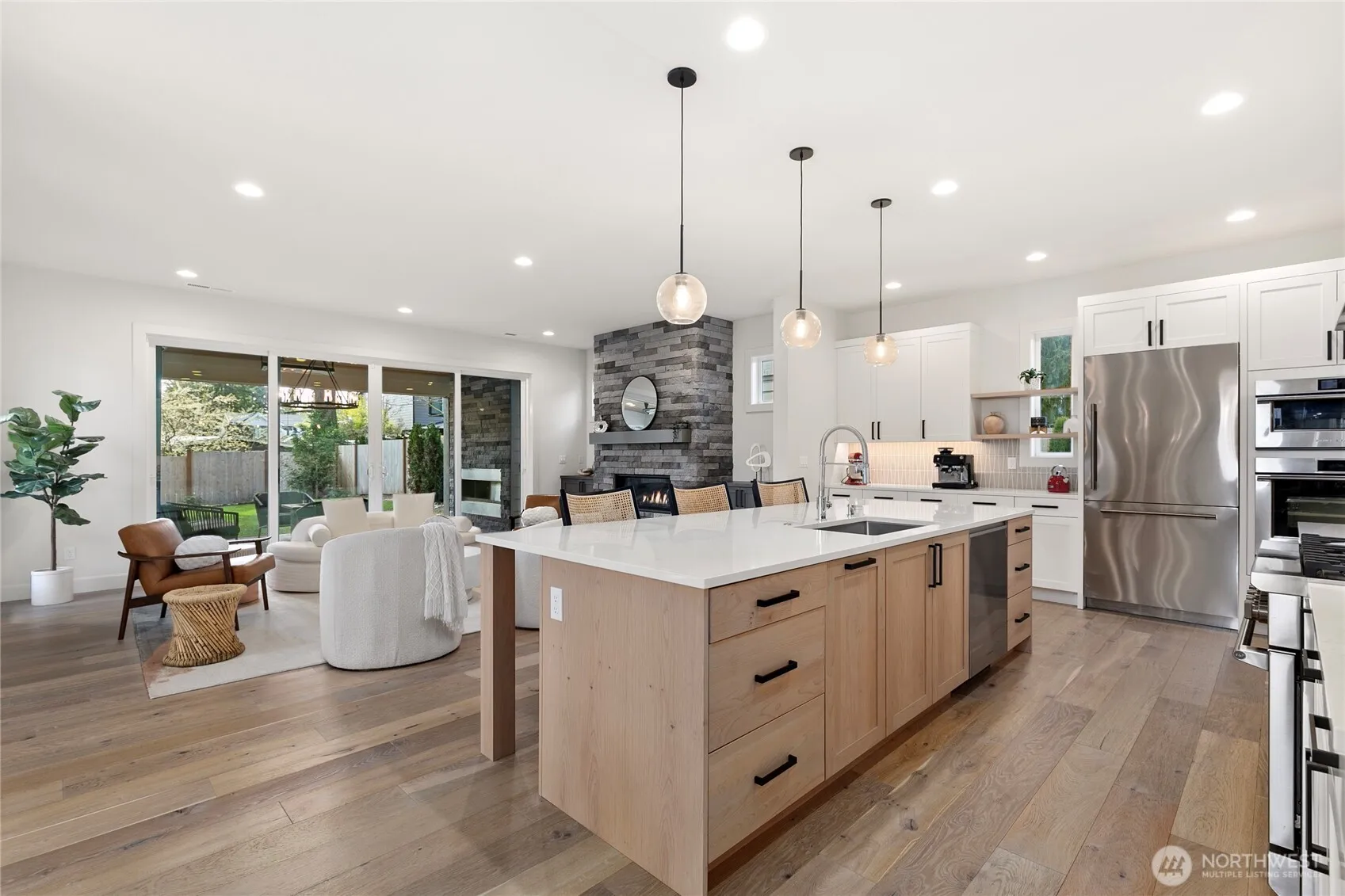 Discover this North-facing, meticulously maintained Rose Hill home that’s better than new construction! This impressive residence welcomes you with wide plank hardwoods and high-end finishes at every turn. The living area features a warm gas fireplace, while a dedicated mud room and 2-car garage offer everyday convenience. The main level also includes a private guest ensuite bedroom. The expansive kitchen features Fisher & Paykel appliances, a gas range, an oversized island, and a walk-in pantry — ideal for hosting gatherings. The formal dining room comes with custom built-ins and a wine fridge. Upstairs, you’ll find four spacious bedrooms, a private office, a flexible bonus room, and a conveniently located laundry room. The grand primary suite is a true retreat, boasting a private deck, a dream walk-in closet, and a luxurious five-piece bath with heated floors. Step outside to a covered patio with a second fireplace, wood ceiling, and outdoor heaters, creating an excellent space for year-round entertaining — plus a professionally landscaped, fully fenced, and irrigated yard. Located just minutes from downtown Kirkland, this home blends comfort, style, and convenience in one of the Eastside’s most sought-after neighborhoods. Top rated Lake Washington School District! Easy commute to Microsoft, Google, I-405, and Downtown Kirkland restaurants, shops, parks & marina. Don’t miss it!
