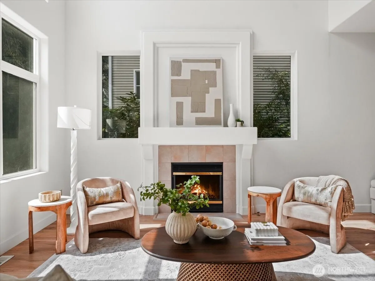 Set within Bellevue’s quiet Saratoga community, this beautifully refreshed home offers the rare combination of privacy, natural light, and unbeatable convenience. Just minutes from The Marketplace at Factoria, T&T Supermarket, I-90, and I-405, it provides easy access to Bellevue’s major employment hubs while feeling tucked away from the rush. Inside, a dramatic double-height living room and soaring window wall flood the main level with light, while the open kitchen, dining, and living spaces create seamless everyday flow. Brand-new carpet, fresh interior paint, and new main-level flooring add a crisp, move-in-ready feel. Upstairs, all three bedrooms are generously sized and bright, complemented by an open loft that works beautifully for office, study, or play. A smart, efficient floorplan makes the most of every square foot, and the easy-care yard offers low-maintenance outdoor living in a peaceful setting. Served by Woodridge Elementary, Chinook Middle, and Bellevue High.