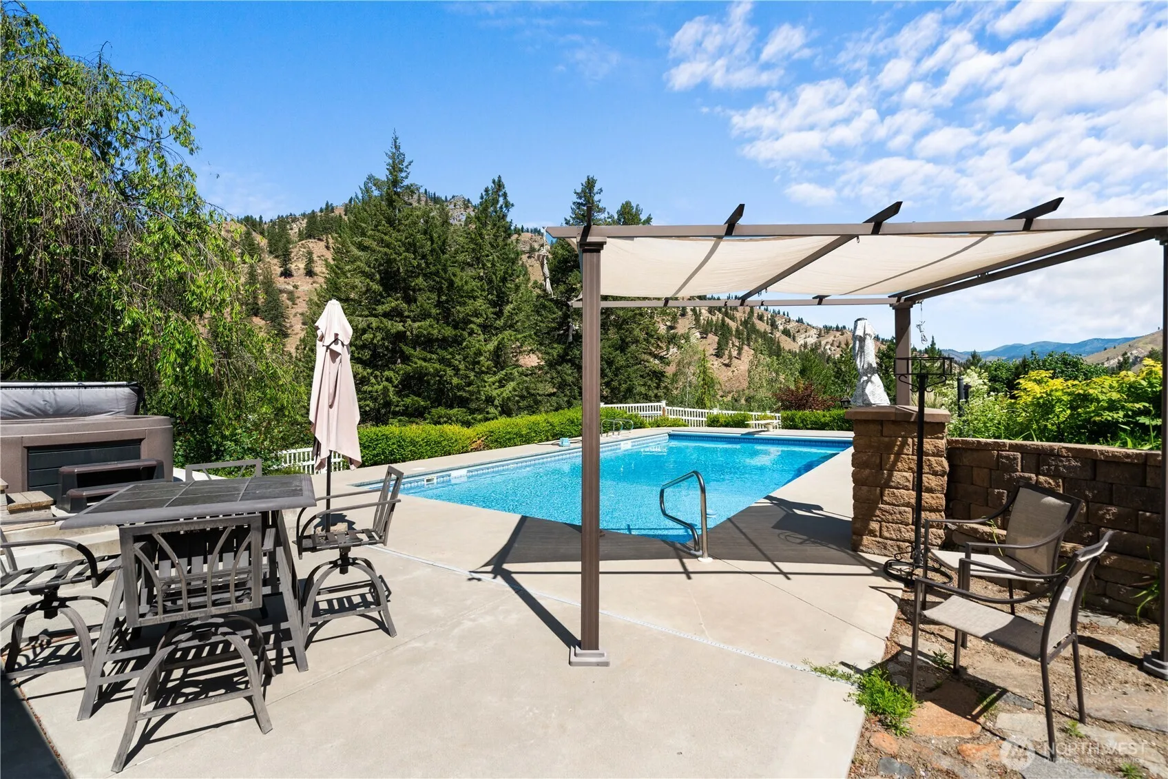 Private Mission Creek retreat set on 5.64 acres in Cashmere, offering a rare combination of usable land, creek frontage, and a true four-season lifestyle. Enjoy a sandy beach creekside, a park-like setting, and sweeping views, with outdoor living centered around a heated 20 x 40 in-ground pool (auto cover new in 2025), expansive patio, & space to relax or entertain in a peaceful, private setting. The 4,200+ sq ft home, built by Darren Knishka, features open-concept living, vaulted ceilings, and a dramatic river rock fireplace. The main level supports true one-level living, while the lower level offers a private lock-off apartment with separate entrance, full kitchen, and bath—ideal for guests, multigenerational living, or rental use. The property is thoughtfully developed for year-round use, featuring underground irrigation servicing the upper grounds and orchard, an irrigation well, and in-ground irrigation across both north and south pasture areas—supporting usability, productivity, and long-term value. Fruit Trees include apple varieties, along with pear, apricot, plum, prune, and cherry trees. Additional features include a private gated driveway, fishing pond, fenced pasture, animal pen with water, and abundant wildlife. A 1,200 sq ft detached garage/shop with loft provides exceptional storage and workspace. The home is wired for indoor/outdoor surround sound and multiple laundry setups. Proven rental history with strong income and prior STR permit (buyer to reapply).
