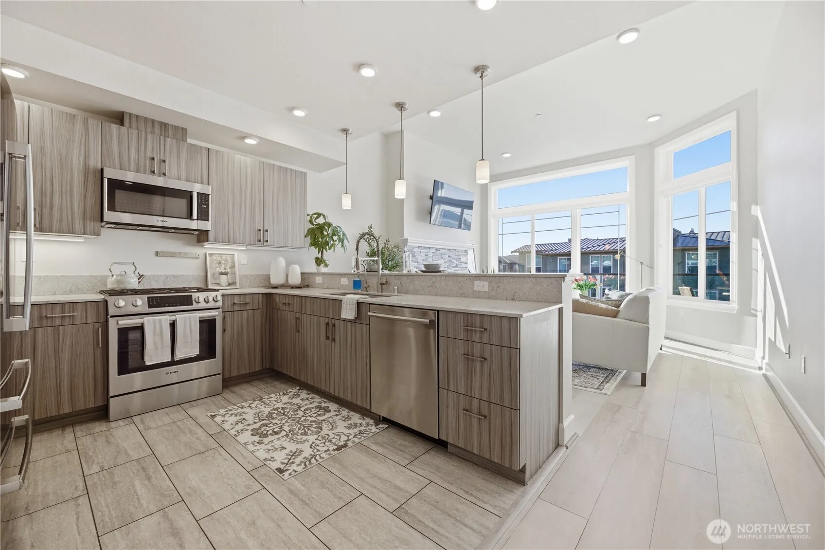 Perched on the penthouse level, this refined one-bedroom residence pairs commanding Sound views with an effortless, lock-and-leave lifestyle at the Tacoma waterfront. Positioned just steps from the private-access elevator, the home also includes a covered premium parking space, making everyday living as convenient as it is elegant. In its coveted location, the condo is wrapped in natural light, while 11-foot ceilings & transom windows bring volume, brightness, and architectural character to the living space & primary bedroom. The result is a home that feels airy, sophisticated & far more expansive than expected. The primary suite is a private retreat w/tranquil water views, a spacious walk-in closet, and an ensuite bath that adds comfort and privacy. Thoughtful details such as solid-core doors at the bedroom, bath, and laundry enhance the sense of quiet and separation throughout the home. An extra flex living space currently functions as an office. Outside, the expansive deck becomes an extension of the living space, offering a front-row seat to sunrises and sunsets over the Sound. Outfitted with gas, water, and electrical connections, it is perfectly suited for outdoor dining, container gardening, or relaxed moments enjoying the view. A generously sized storage room just across the exterior hall adds practicality without sacrificing style. Set within the Baker Condo Building, this home offers access to a welcoming, well-kept community in the heart of Point Ruston.