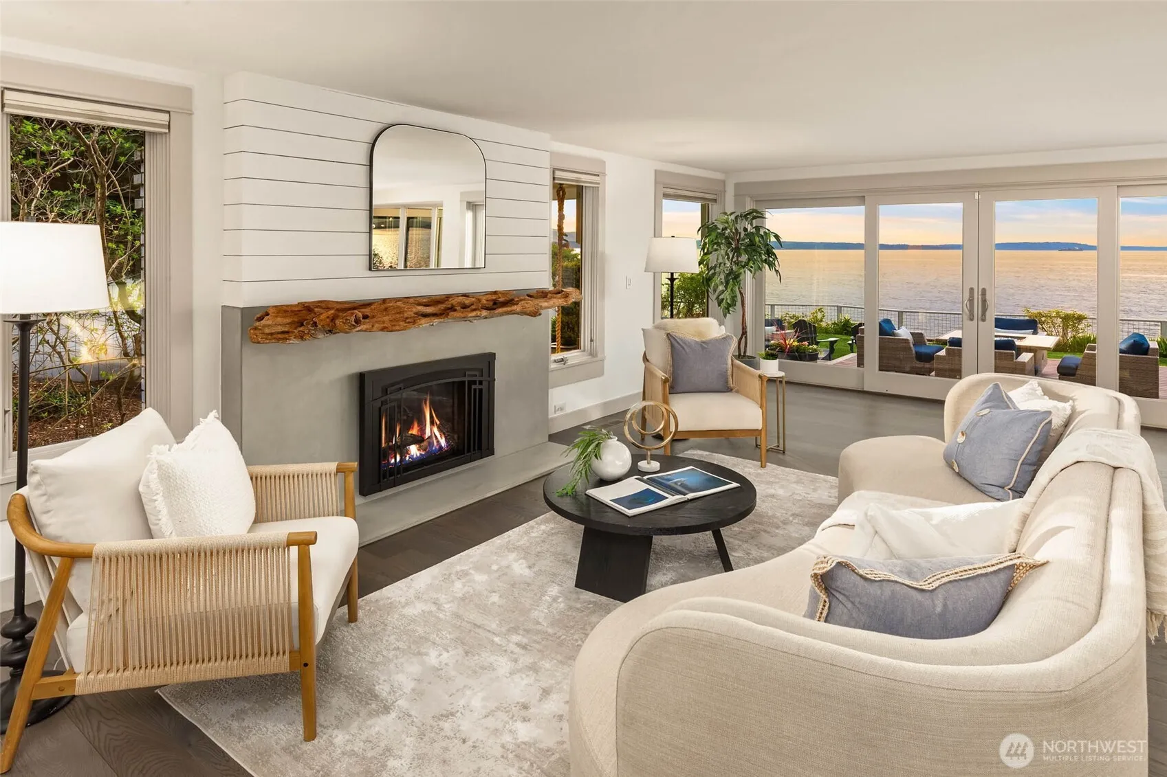 Enjoy sweeping vistas of Puget Sound and the Olympic Mountains. This exceptional waterfront home offers a rare sense of tranquility, where every detail is designed to embrace its breathtaking surroundings. Bathed in natural light, this home features walls of windows that blur the line between indoors and out. The kitchen and living spaces flow onto an expansive deck with an outdoor kitchen and a front-row seat to some of the most peaceful, mesmerizing views you could have—ideal for entertaining and watching the most stunning sunsets. It truly feels like you’re floating on the water. A bedroom, bath, and exceptional office space complete the main level. Upstairs the primary suite is its own private sanctuary. Wake up to the sound of gentle waves and panoramic views, then unwind in a luxurious soaking tub or separate shower—all perfectly positioned to take in the scenery. There is also an additional ensuite bedroom with a cozy loft—ideal for relaxing or reading. The lower level expands your options with a versatile space featuring a workout area, Murphy bed, media setup, and a spa-like steam shower bath—perfect for guests or downtime. A one-car garage and additional off-street parking add convenience. Tucked within the serene, beachside setting of North Beach, this residence offers the feeling of a private coastal escape—yet remains just minutes from downtown Seattle and the vibrant shops and restaurants of Ballard. A home of this caliber doesn’t simply impress—it captivates.