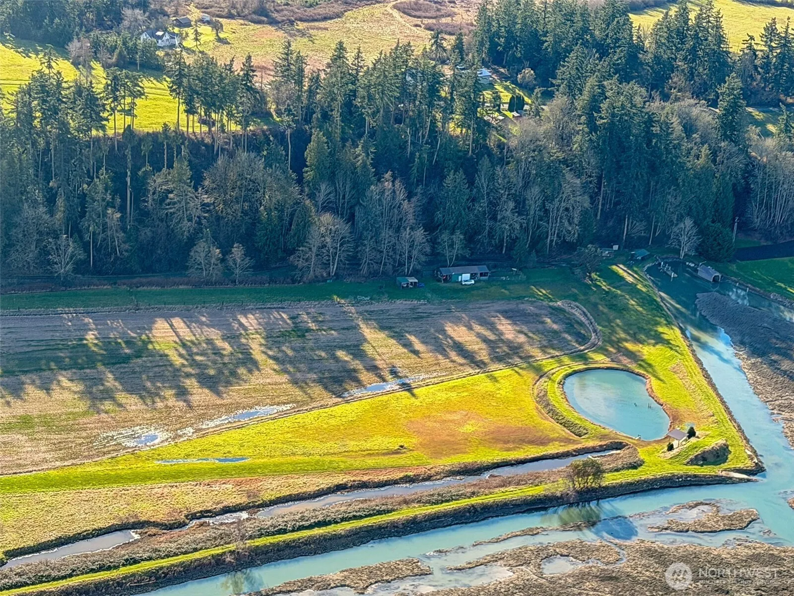 A truly rare Northwest legacy property—an extraordinary multi-use estate offering aviation, agricultural, recreational, and income-producing features in one breathtaking setting on Camano Island. Rare opportunity to own a remarkable multi-use waterfront-adjacent estate on Camano Island, offering sweeping views of Puget Sound and surrounding mountains. This exceptional agricultural and recreational property features a private 2,500’ grass airstrip, making it ideal for aviation enthusiasts, along with established farm income and multiple improvements. The land includes a 24×58 pole barn, charming cabin, 20×35 cabana, grandstand, scenic pond and Boat launch with access to Skagit Bay (half ownership of floating dock with 2 jet ski lifts), creating a truly unique setting for private enjoyment, events, or agricultural operations. An established RV campsite with hookups adds versatility for guests, seasonal use, or additional income. Farmers lease income $14,500 annual for crops, and is enrolled in agricultural use. The open pastureland, level topography, and expansive acreage offer endless potential for farming, equestrian use, recreation, or a private aviation retreat. Enjoy breathtaking Sound and mountain views, peaceful privacy, and the rare combination of aviation, agricultural, and recreational. Do not walk lot without permission.