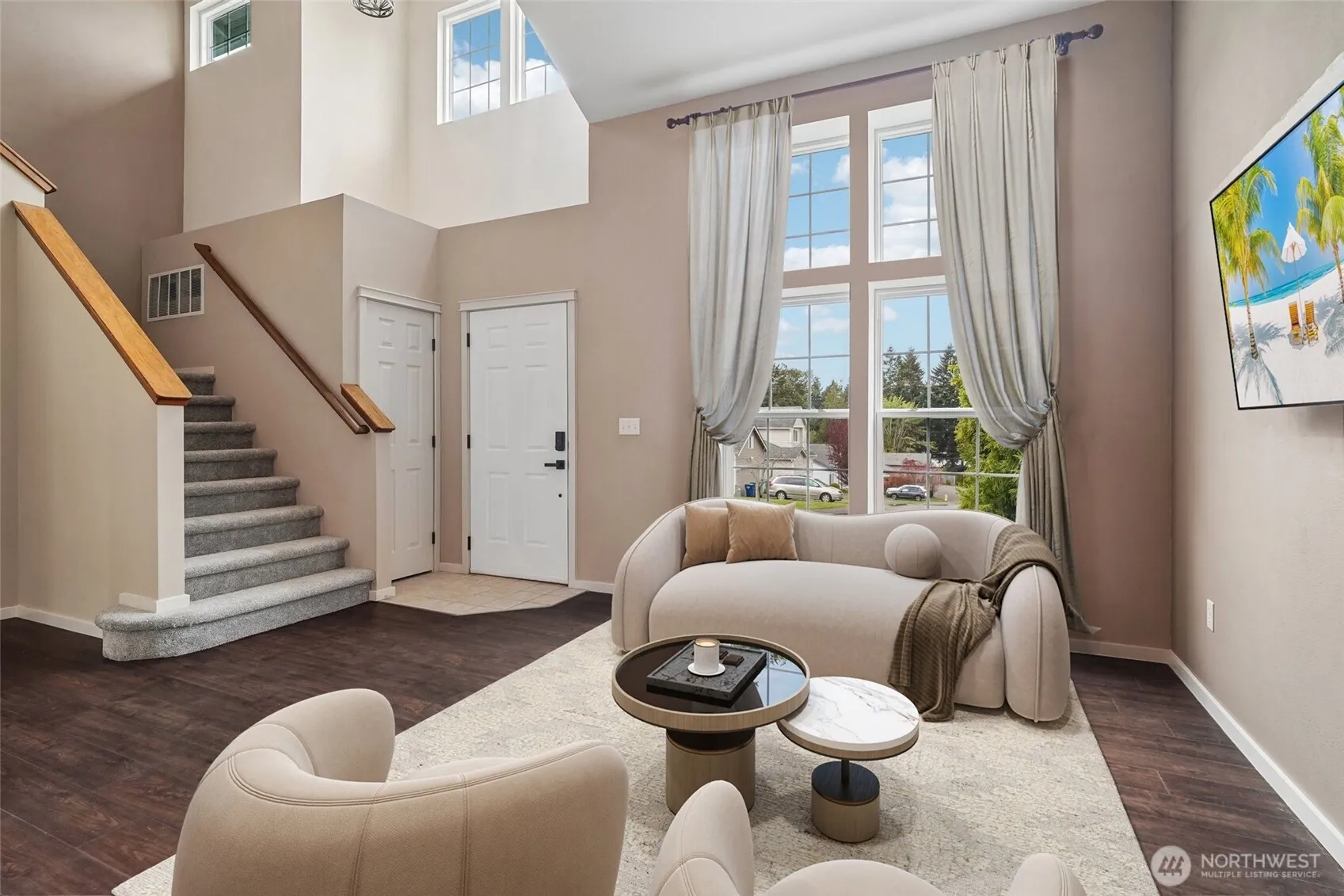 Welcome home to this impeccably maintained 3 bedroom, 2.5 bath two-story residence designed for both elegance and comfort. The main level greets you with sophisticated formal living and dining rooms, leading into a spacious gourmet kitchen featuring premium Corian countertops, rich walnut cabinetry with soft-close drawers, a pantry, and a center island. The open-concept family room creates an inviting atmosphere with its cozy gas fireplace and durable bamboo hardwood floors. Retreat to the expansive primary suite, a private oasis boasting a luxurious five-piece bath and a spacious walk-in closet. Upstairs, two additional well-appointed bedrooms share a convenient dual-vanity bathroom. Modern essentials abound with central AC for year-round comfort, solar panels for energy efficiency and a sprawling three-car garage, and a beautifully landscaped yard perfect for outdoor enjoyment. Combining sophisticated finishes with a functional layout, this home is ready for you to move in and enjoy!