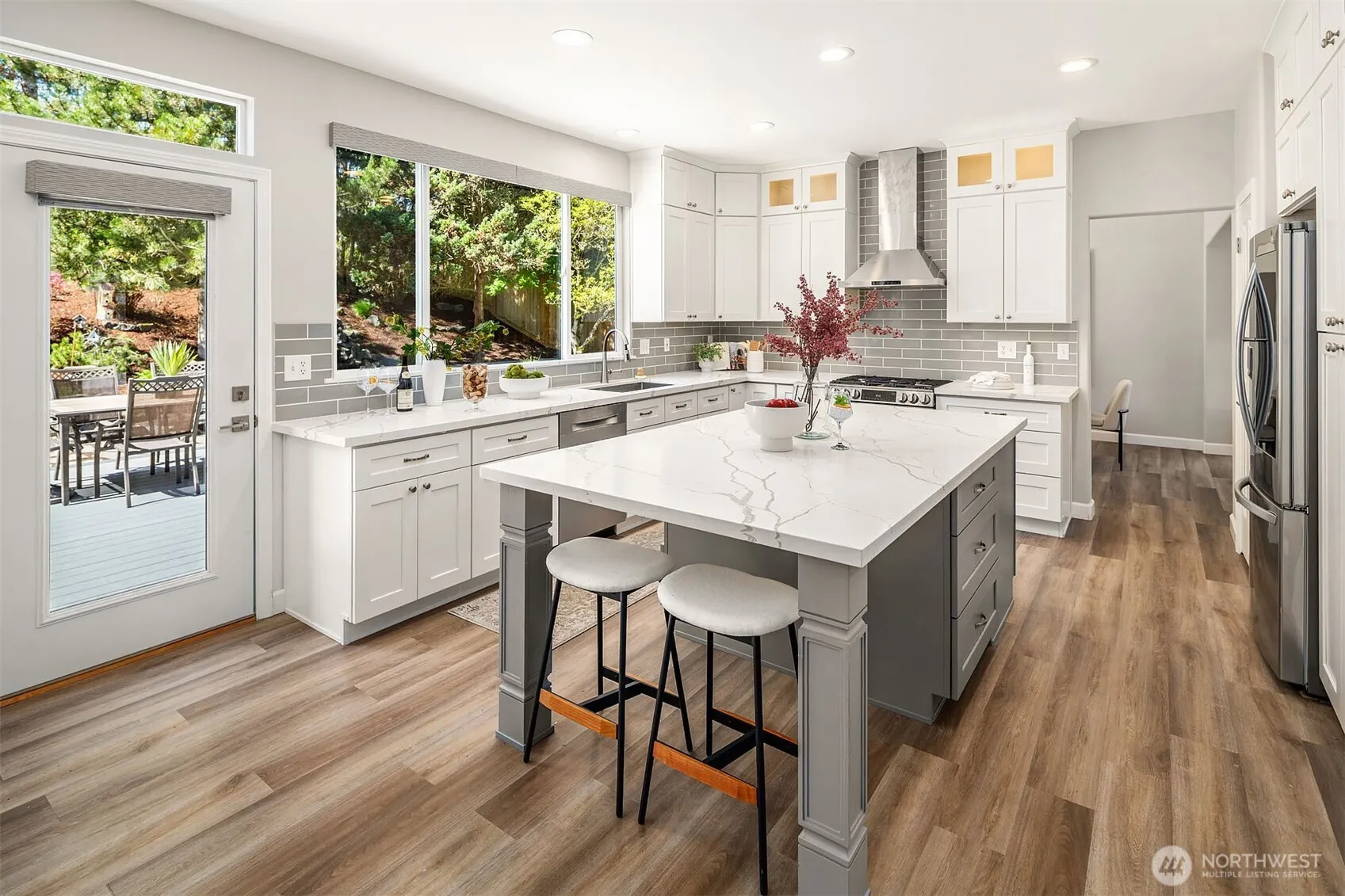 {{Highlands neighborhood in Snohomish, set against a verdant protected greenbelt}} This light-filled 5-bedroom, 3-bath home offers 2,925 sq ft of thoughtfully designed living. A covered front porch welcomes you into a soaring entry w/ formal living & dining rooms, creating a sense of space + flow within its timeless layout designed for modern living. The main floor includes a versatile bedroom w/ double doors, ideal for an office or guest suite, alongside a full bathroom w/ quartz counters and tile flooring. The kitchen is beautifully updated w/ quartz countertops, a large island + a gas stove, SS hood, stacked cabinetry, under-cabinet lighting, & two pantry options, incl. pull-out shelving. The family room is bright & inviting w/ a gas fireplace & easy access to outdoor living. Step outside to a Trex-style deck, additional patio spaces, & a fully fenced, manicured backyard featuring a tranquil water feature + pond, all backing to green space for exceptional privacy. The setting offers a rare sense of privacy & calm, an ideal environment for entertaining or a quiet retreat. Upstairs offers 4 additional thoughtfully located bedrooms, a spacious primary suite w/ a walk-in closet & a five-piece en-suite, a main bathroom, & a large bonus room. Newer paint in & out, new carpet, LVP flooring, & a newer roof complete this home. The sought-after neighborhood enjoys access to playgrounds, pickleball courts, & more. A rare combination of space, privacy, & community. Make it home today!