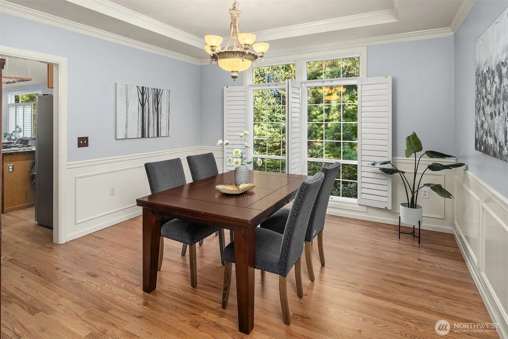Tucked away in the coveted community of Coalfield Crossing, this beautifully maintained Chaffey home combines elegant landscaping with a thoughtful, modern floorplan. The main foyer opens to a spacious living room with exposed beams, overlooking a light-filled dining room with gleaming hardwood floors. The open-concept kitchen—complete with breakfast bar and casual dining space—flows seamlessly into the inviting family room, featuring a gas fireplace, custom built-ins, and access to an elevated deck ideal for entertaining. A large laundry/utility room, half bath, and generous office with French doors complete the main level. Upstairs, two spacious bedrooms and a versatile bonus room (perfect as a fourth bedroom or rec room) share a full bath. The primary suite offers a serene retreat with a sitting area, five-piece bath, and walk-in closet. Nestled on a quiet cul-de-sac, this classic home provides exceptional privacy. Recent updates include a new roof (2024), new exterior paint (2025), refinished kitchen hardwoods, and a new dishwasher. Located within the top-rated Issaquah School District and minutes from I-405, parks, trails, grocery stores, Factoria Shopping Center, and Sno-King Ice Arena. A true move-in-ready gem in a highly sought-after neighborhood!
