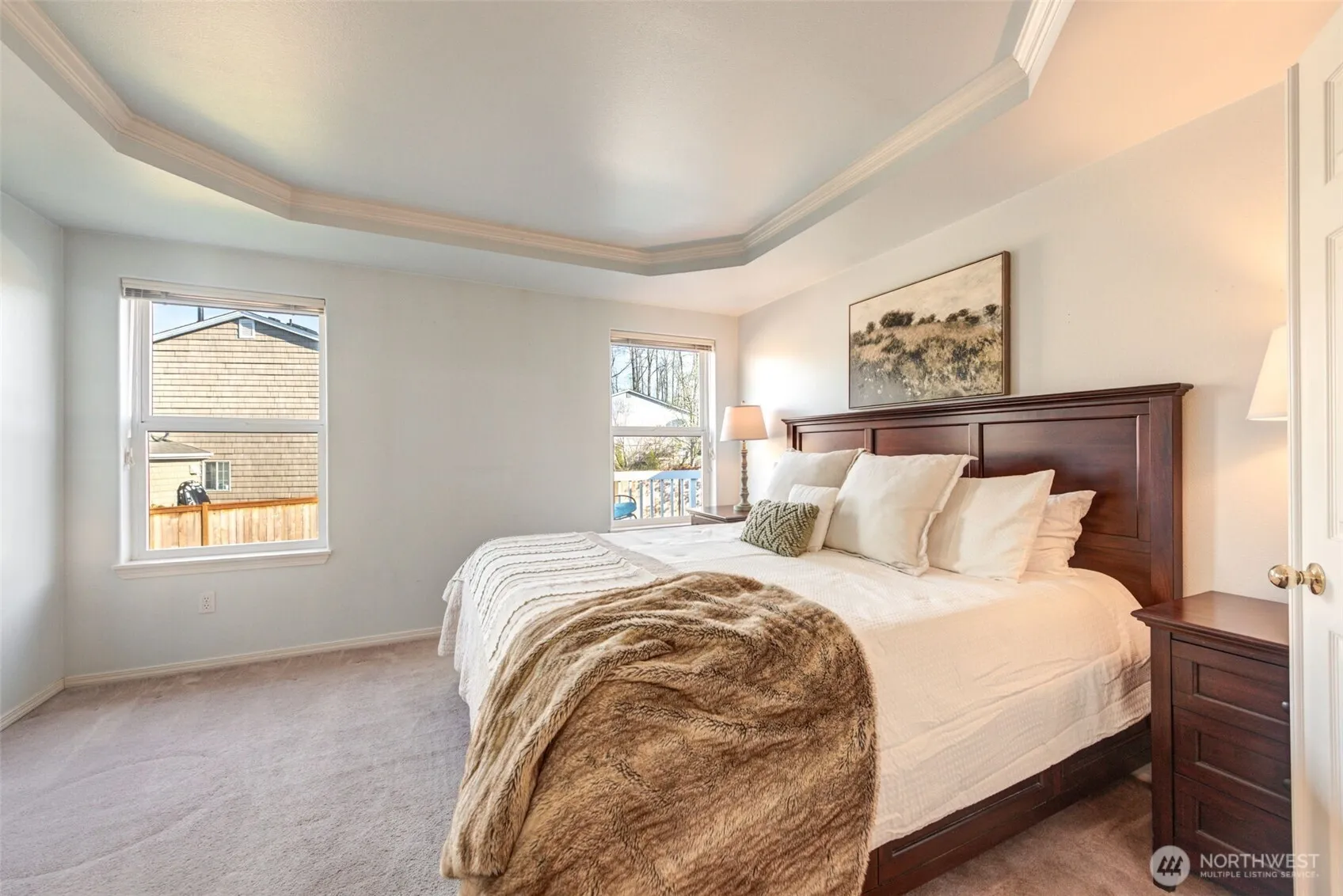 Charming and beautifully maintained rambler in the heart of Lake Stevens offering ideal one-level living! This inviting home features a newer roof, updated siding, and fresh exterior paint—providing peace of mind and standout curb appeal. A cute covered entry welcomes you inside, where vaulted ceilings create a bright, open feel throughout the main living spaces. The thoughtfully designed floor plan offers comfortable, functional living, including a spacious primary bedroom with private en suite bath. Enjoy seamless indoor-outdoor living with a generous composite deck (Trex-style decking)—perfect for entertaining, summer BBQs, or simply relaxing and enjoying the outdoors. The fenced yard is both generous and low maintenance, featuring a raised garden bed and plenty of space to play, garden, or unwind. Two-car garage plus ample additional parking for guests or extra vehicles. Conveniently located near shopping, parks, dining, and major commuter routes, and served by sought-after Stevens Creek Elementary and North Lake Middle School in the Lake Stevens School District. Move-in ready with great curb appeal and the perfect setup for outdoor living—morning coffee on the deck and evenings in your private backyard.