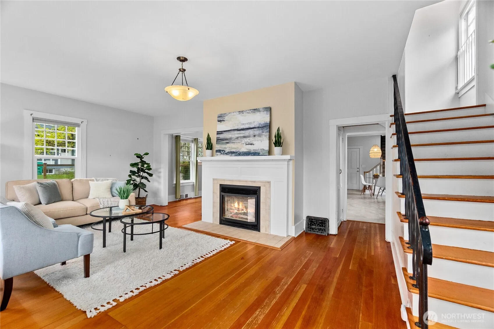 This charming vintage 4+ bedroom home in the highly sought-after Historic South Capitol neighborhood is just moments from the Capitol Campus, and something really special! You get the best of location, charm and character, plus everyday functionality all in one place- AND a stunning view of the Capitol Dome! Flexible living spaces, with lots of fun nooks, including a sunny living room, huge formal dining room; an eat-in kitchen that offers generous storage and great light. The gas fireplace adds warmth and comfort to the living room, while the inviting covered front porch is perfect for relaxed mornings with your coffee. An attached 2 car garage plus 2 additional off-alley parking spaces and ample street parking is a rare find in this area. Step outside and enjoy established landscaping featuring fruit tress, and a great patio sitting area in the fenced yard. This home offers classic charm, usable and flexible spaces, and an unbeatable location a stones throw to the Capitol Campus, downtown Olympia, parks, restaurants and all the amenities.