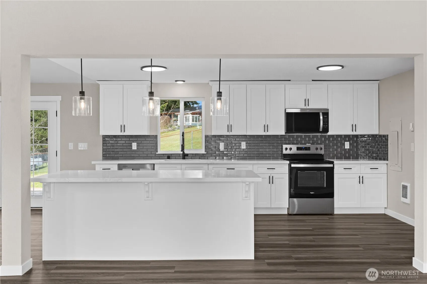 Welcome to this stunningly remodeled residence situated on a premier corner lot in the highly sought-after Meadows community of Olympia. Boasting 2,144 square feet of meticulously updated living space, this 5-bedroom, 2.5-bathroom home offers the perfect blend of contemporary style and functional design. Step inside to discover a state-of-the-art chef’s kitchen featuring brand-new white shaker cabinetry, premium quartz countertops, a designer tile backsplash, and a suite of integrated stainless-steel appliances centered around an expansive kitchen island. The luxurious finishes extend throughout the home with all-new flooring, modern trim, upgraded doors, and designer lighting. Each bathroom has been elegantly refreshed with new cabinets, quartz counters, and custom tile work. Significant system upgrades, including a new water heater and fresh interior and exterior paint, ensure a truly turn-key experience. The exterior is equally impressive, offering exceptional curb appeal and a massive backyard designed for entertaining, complete with a large wood deck and a custom fire pit. Located just minutes from top-rated schools and local amenities, this home offers “new construction” quality within an established, vibrant neighborhood. Experience the peak of Pacific Northwest living in a home where every detail has been thoughtfully curated for the modern buyer.