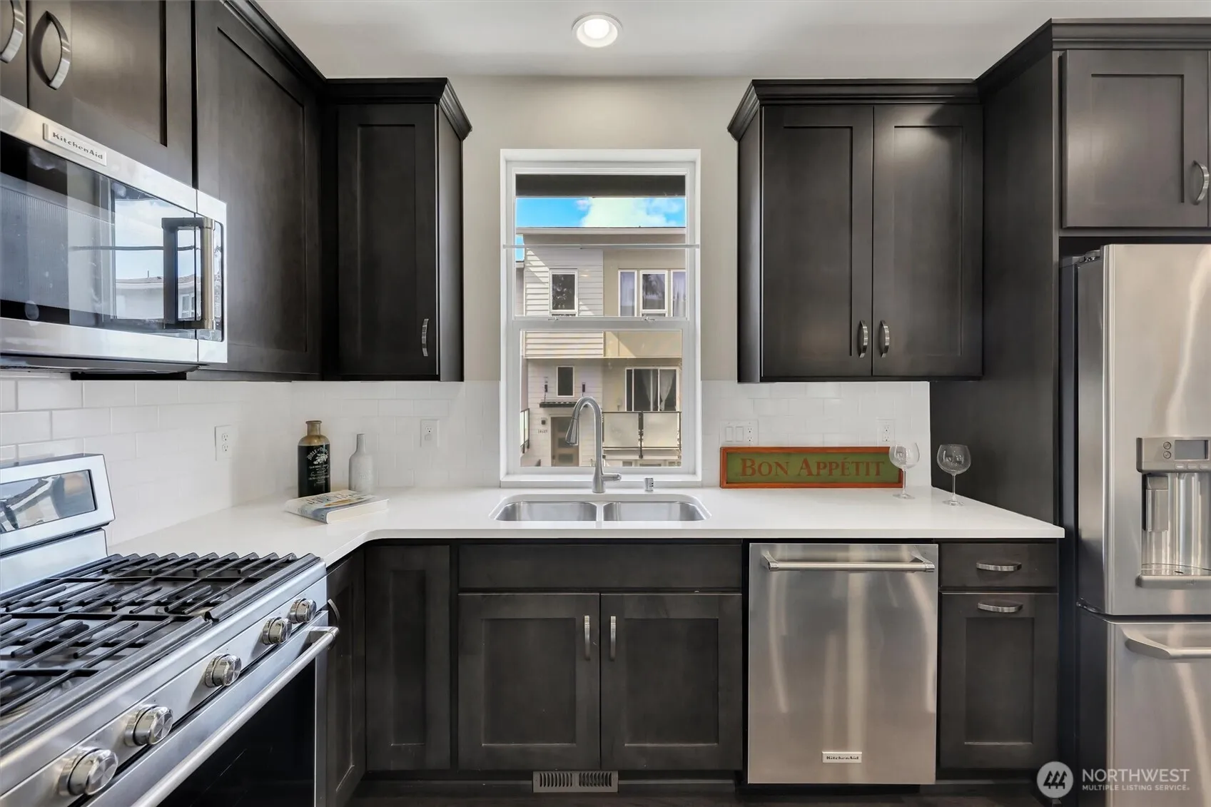 Welcome home to THE ONE! Located in the sought after 12 Degrees North community! This beautifully crafted, modern, single-family home stands out for its expansive open concept design and unbeatable Northeast Seattle location. The main living level is bright, airy, and designed for connection—where generous living and dining spaces flow seamlessly into a contemporary kitchen featuring stainless steel appliances, quartz countertops, and large island. High ceilings, abundant natural light, and beautiful wide plank floors elevate the space. The east facing deck extends the living area to the outdoors. Upstairs, the serene primary ensuite offers a spa inspired bath w/dual walk-in closets, additional bedroom ensuite, and large laundry room. The flexible lower level adds even more versatility with a private 3rd bedroom ensuite with slider to patio—ideal for guests, home office, or multi-generational living. A large 2 car garage completes the package. Enjoy unlimited hot water w/the tankless hot water system and central forced air provide modern comfort and convenience throughout. Set in a prime location near the Burke-Gilman Trail, Lake Washington, light rail, and quick access to I-5, this home delivers outstanding connectivity for both commuting and recreation. Located in a pet friendly community, it’s an exceptional opportunity for homeowners and investors seeking stylish, open concept living in one of Northeast Seattle’s most desirable areas. DON’T MISS THIS!