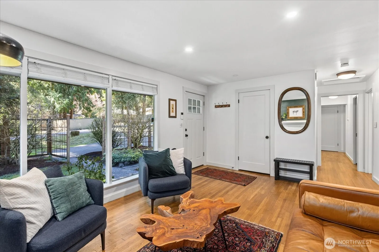 Escape from urban life to this 4-bedroom, one-level, with Northwest contemporary feel. Lovingly updated with thoughtful intention & pride of ownership. Lake Forest Park’s magnificent sweeps of forest green inspired the natural interior finishes, and an exterior landscape design that harmonizes home to setting. Significant investments in the home’s core systems & structural integrity included new: lighting & paint throughout, roof ’18, ducted heat pump for heat & A/C ’19, crawlspace insulation & vinyl windows ’20, PEX plumbing ’21, electrical panel & exterior paint ’22, chimney repointing ’23, cedar fence ’25, and attic ventilation system coming soon. The remodeled kitchen captivates with the rich hues of walnut butcher block counters & beautiful, soft-close cabinetry set against gleaming subway tile. There’s plenty of room to entertain on the adjoining sunny deck or in the large, fully fenced backyard. The bathroom updates add to the overall appeal. Discover the charm of LFP’s small town vibes along the shores of Lake Washington. Deeded membership rights to join LFP Civic Club, featuring access to beach, club house & boat launch only 1 mile away! Exceptional location, near numerous parks, I-5, 522, LFP Town Center, Burke-Gilman Trail and public transportation; including the Link Line 1 & 2 trains a mere 5 min drive from home! Highly-regarded Shoreline Schools, incl. Brookside Elem 1 min downhill. Prepare to fall in love with the location, updates and serenity of this home.