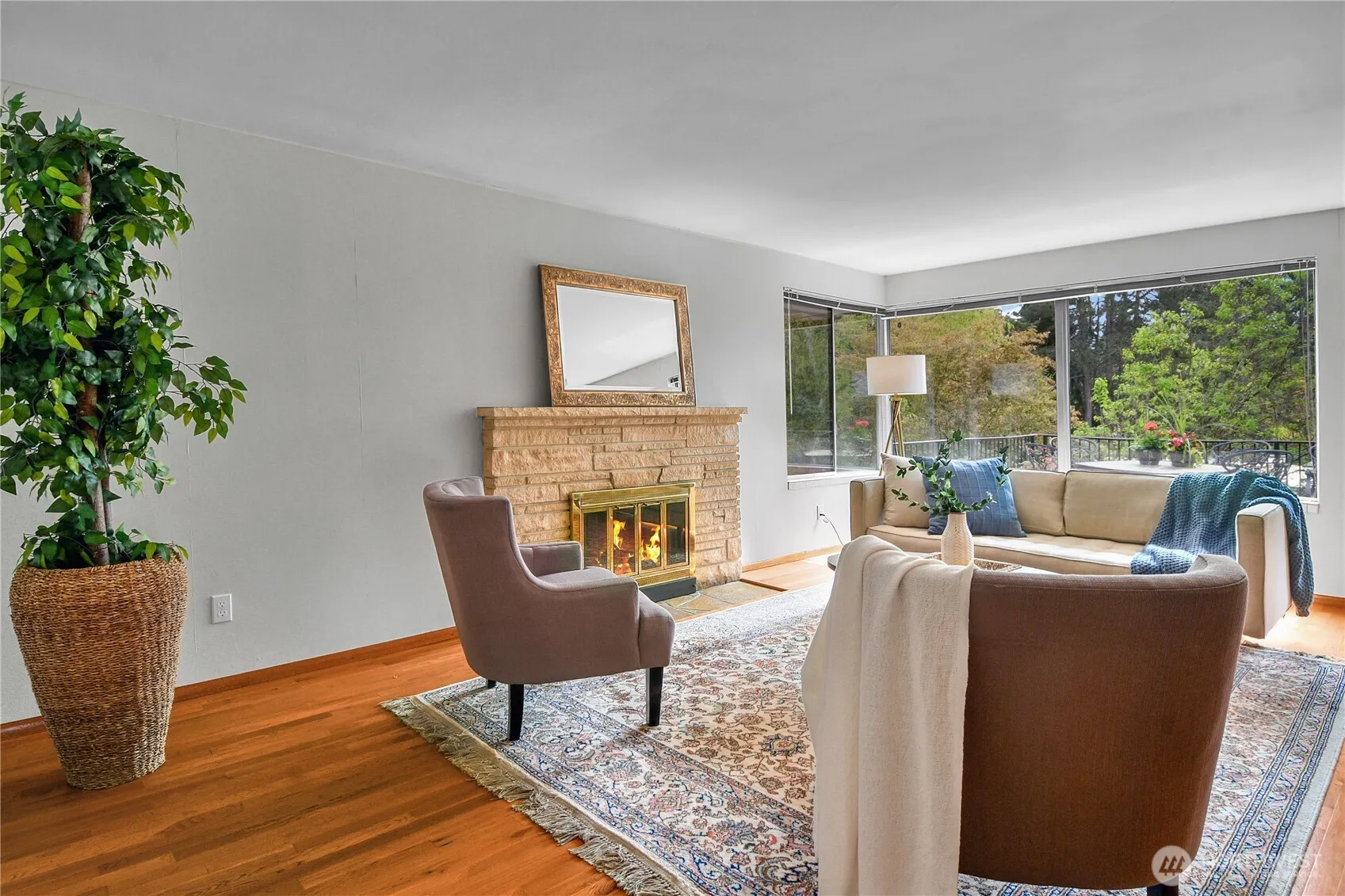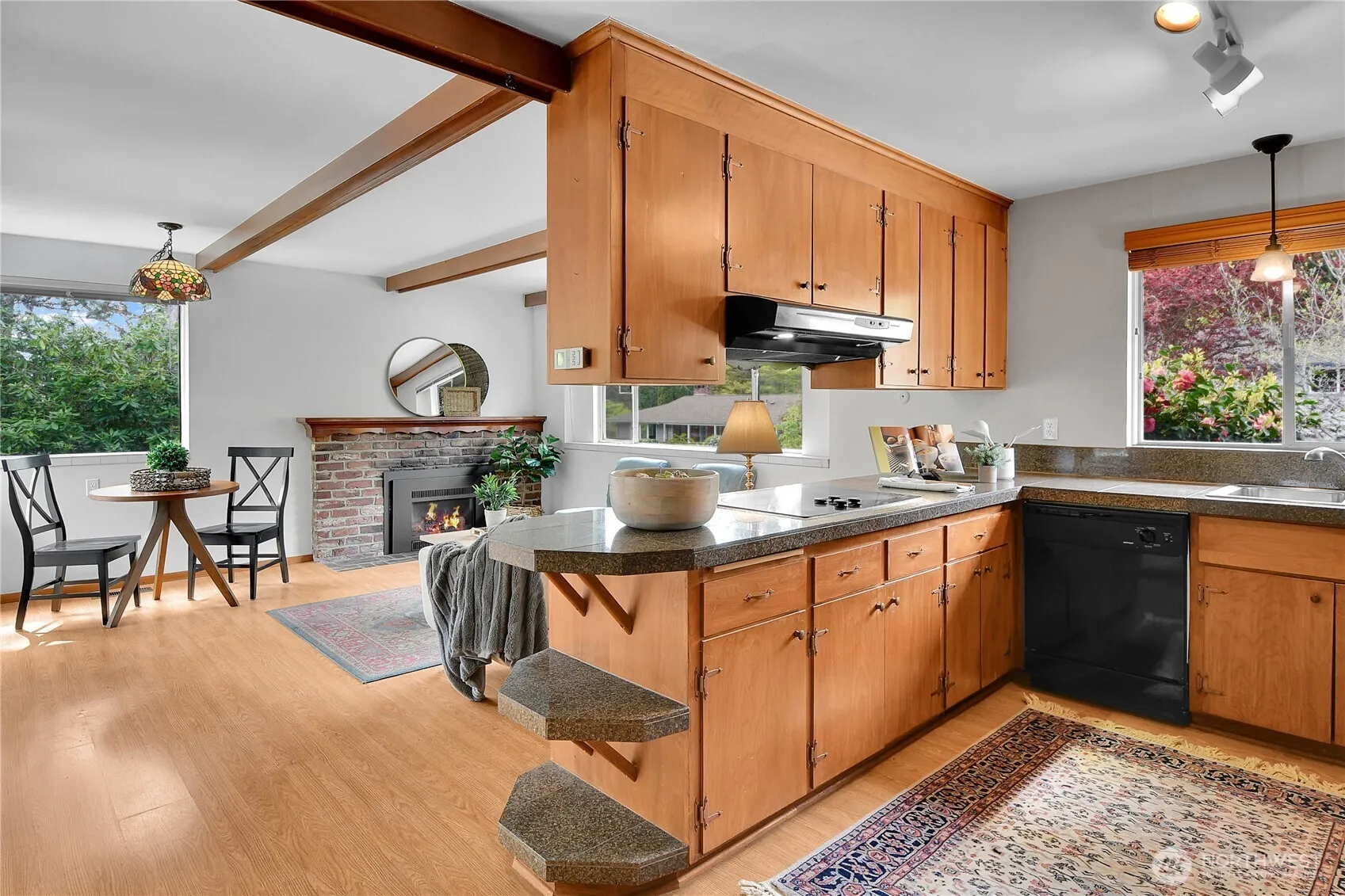 Located in the heart of Lake Forest Park this 4 bedroom, 3 bath home sits on a lovely 9200 square foot lot. The main level has 3 bedrooms. The primary bedroom has its own bathroom. There are hardwood floors throughout the main level. The heart of the home is the large kitchen that opens to a cozy family room with a gas fireplace and access to the side deck. The living room has walls of windows and a fireplace as well. A carpeted stairwell takes you down to the lower daylight level with a family room, fireplace, one large bedroom, utility room and access to the 2 car garage. Welcome home!