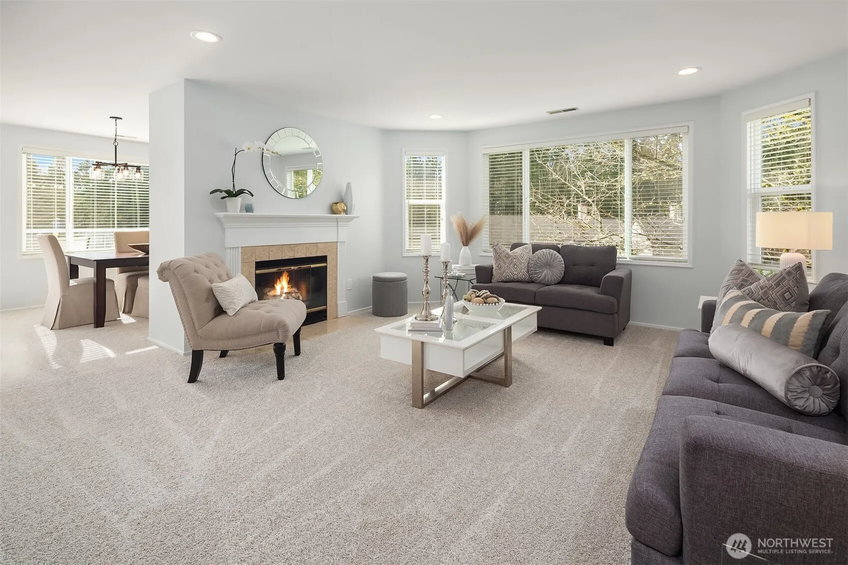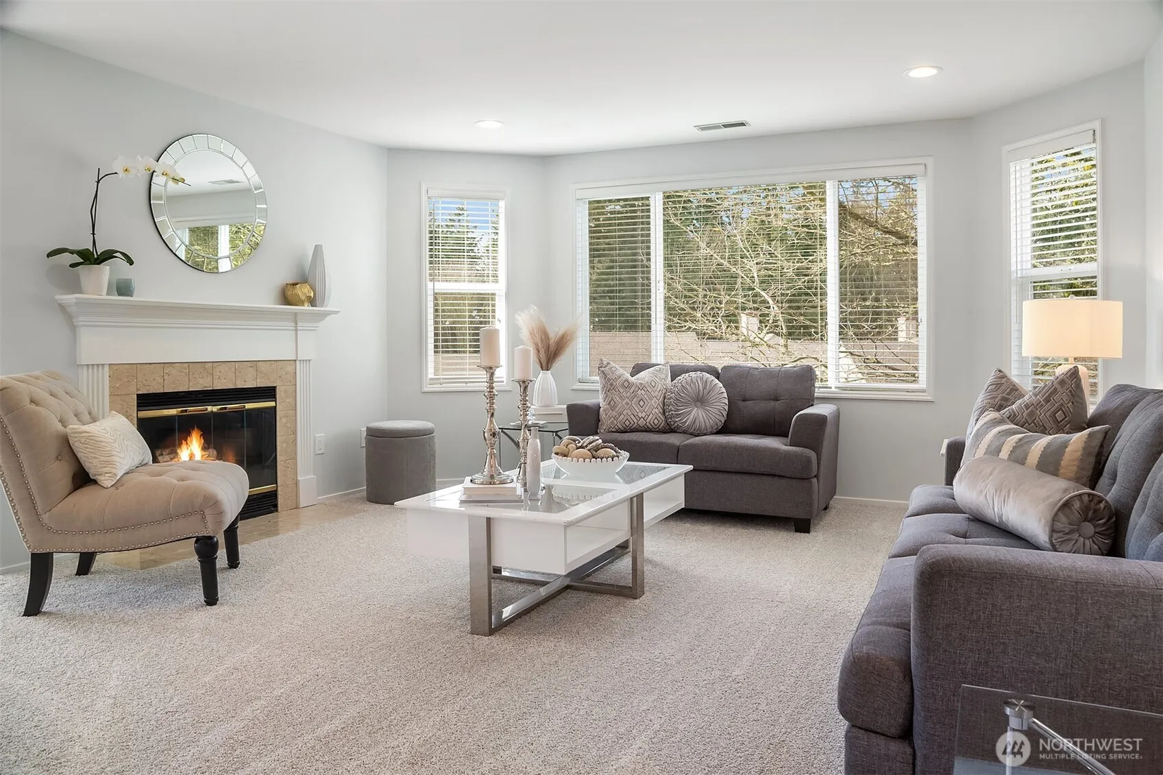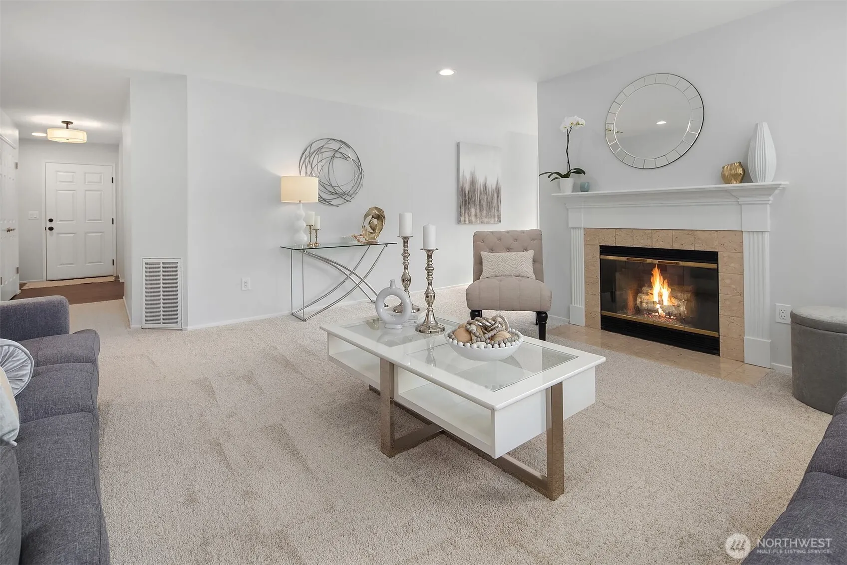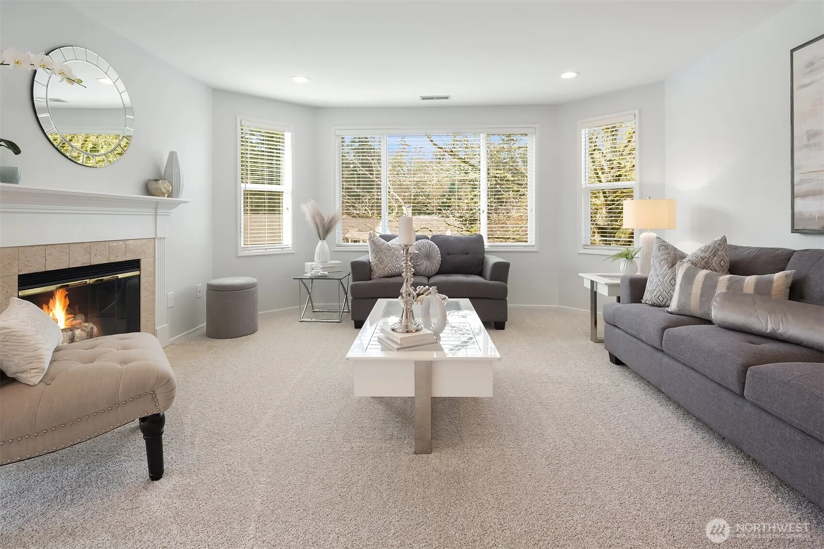 Welcome to this inviting upper-level end-unit residence in the highly sought-after 55+ community of Providence Point. Thoughtfully designed, this beautifully appointed home offers 2 BD, 1.75 baths, and a versatile den, all set within a peaceful & picturesque setting. Recent enhancements include elegant new countertops, a new refrigerator, fresh interior paint, new carpeting, and updated lighting, creating a bright, refined, and truly move-in-ready atmosphere. The refreshed kitchen, complete with a sunlit breakfast nook, flows effortlessly into the formal dining area and expansive living room. A cozy fireplace with a wall of windows fills the space with natural light, creating a warm & welcoming ambiance. Just off the dining room, a private balcony invites you to enjoy morning coffee or unwind with peaceful sunsets, adding a quiet outdoor retreat to everyday living. The thoughtful layout offers an ideal balance of open gathering spaces & defined areas for comfort & relaxation. The primary suite serves as a serene retreat, offering generous proportions & ample room for a comfortable sitting area or reading nook, along with abundant closet space. The spa-inspired bath provides a tranquil setting to begin & end your day, creating a true sanctuary within the home. A well-appointed guest bedroom & flexible den or office provide wonderful versatility for visitors, hobbies, or working from home. A detached one-car garage with additional storage sits just steps from your front door.