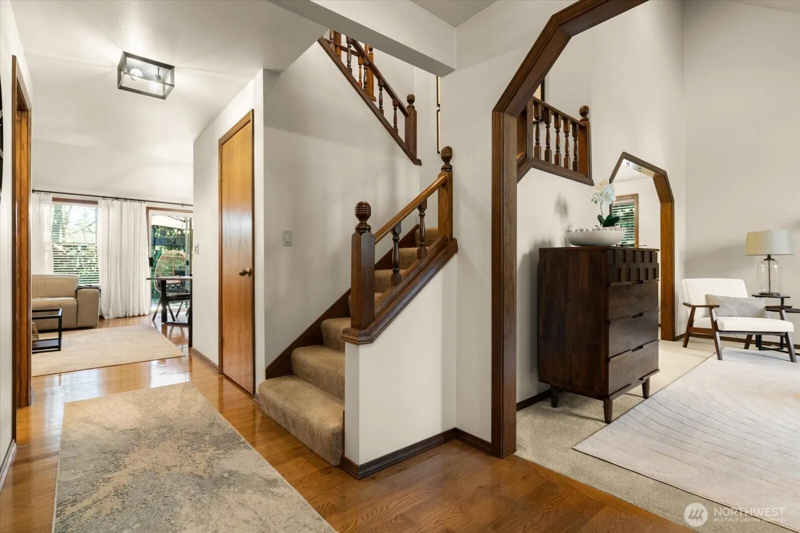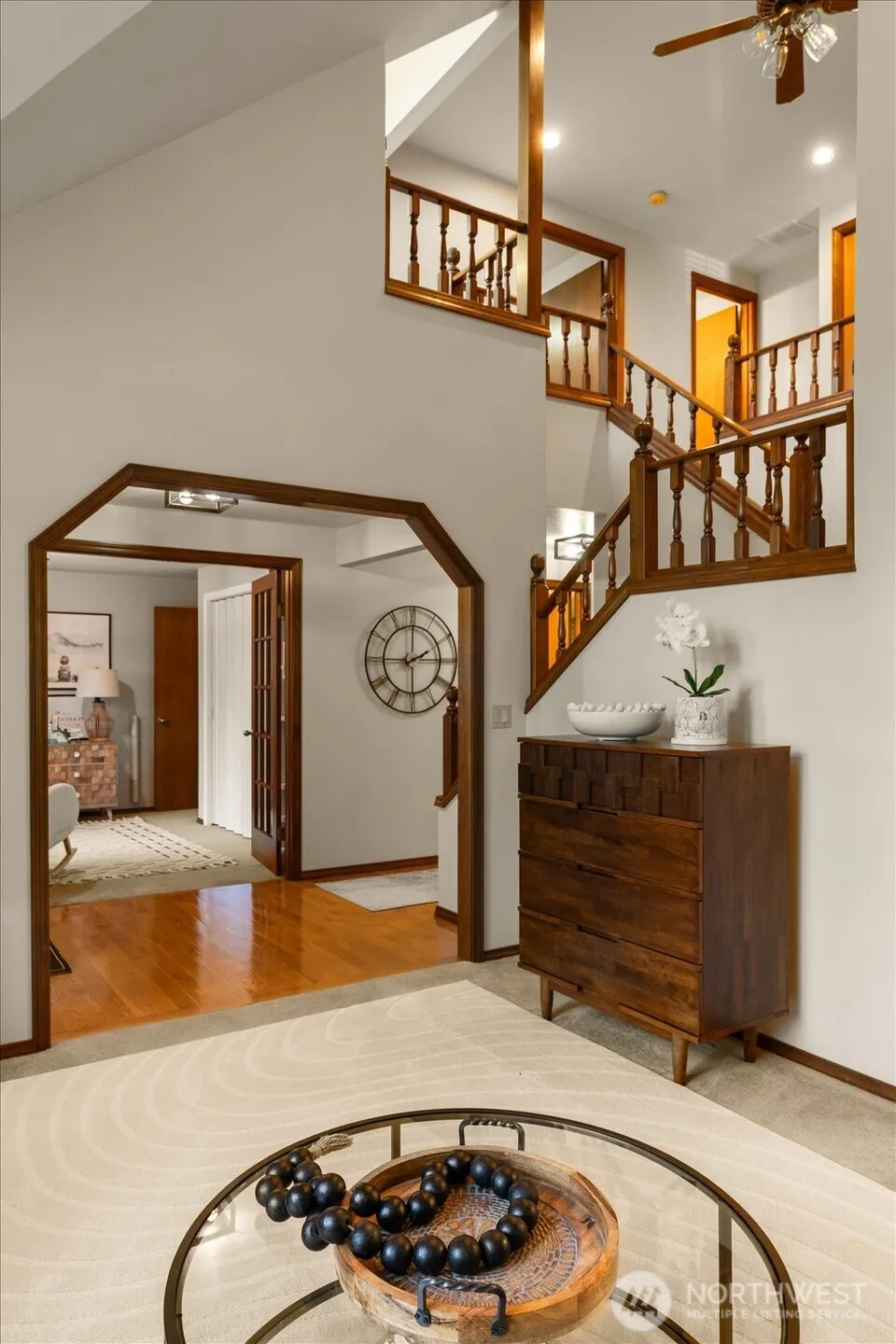 Amazing-Peaceful-Private home nestled on over one acre level lot in the desirable Winterwood Estates community. Step into this well-maintained semi updated home with vaulted ceilings creates a warm and spacious feeling. Main level entry with adjoining den or 4th bedroom, a formal dining room, eat in kitchen/great room offers SS appliances. Updated laundry room with added sqft & .75 bath. Primary bedroom on the main floor offers an en-suite bath with morning views through sliders/deck of natural tranquil settings. Upstairs bedrooms are accompanied with their own bathroom and a flex space. Oversized 2-car garage, and detached 16×36 drive through garage/shop/boat/RV space ample parking. Covered 13×33 Pergola with power offers alternative space to entertain. Nestled on a large 1+acre private lot, this property blends comfort, functionality, and natural beauty in a quiet, serene location. So many added features to list here!